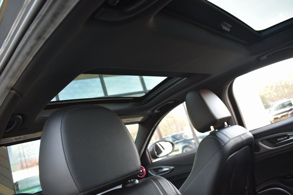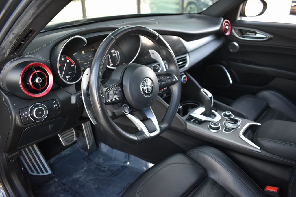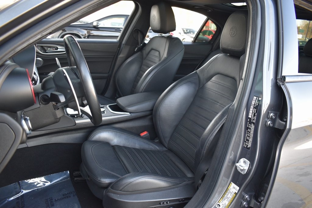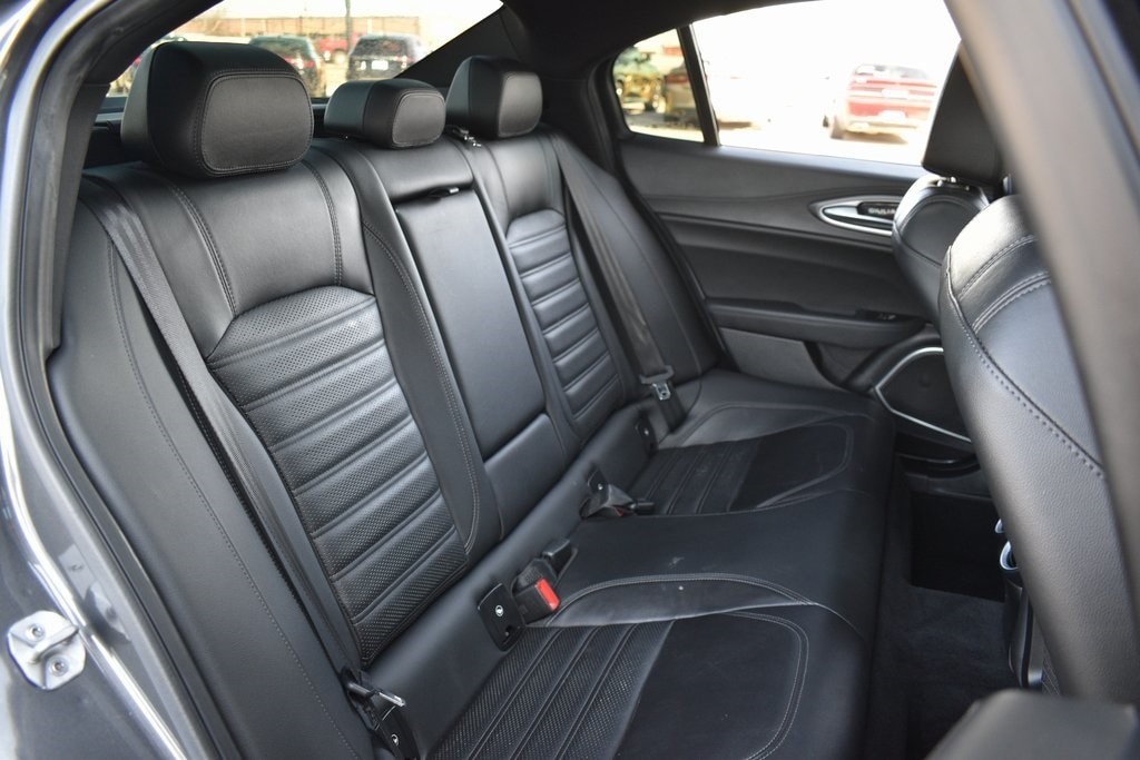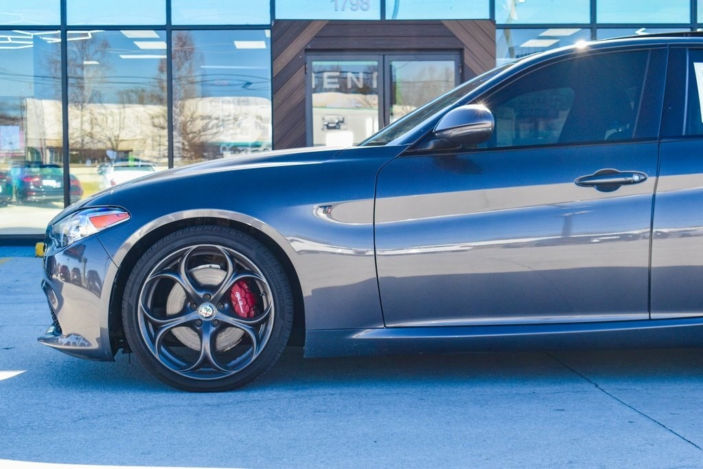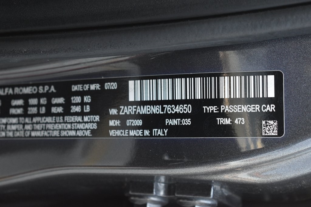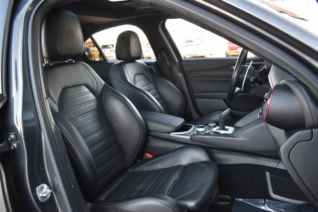 Vesuvio Gray Metallic 2020 Alfa Romeo Giulia Ti Sport RWD 8-Speed Automatic I4 14 Speakers harman/kardon Premium Audio, 4-Wheel Disc Brakes, 8 Speakers, 8.8" Touchscreen Display, ABS brakes, Air Conditioning, Air Quality System, Alloy wheels, Aluminum Interior Trim, Aluminum Steering Column Mounted Paddle Shifters, AM/FM radio: SiriusXM, Apple CarPlay/Android Auto, Auto-dimming Rear-View mirror, Automatic temperature control, Black Headliner, Brake assist, Bright Aluminum Pedals, Bumpers: body-color, Colored Brake Calipers, Compass, Delay-off headlights, Driver door bin, Driver vanity mirror, Dual front impact airbags, Dual front side impact airbags, Dual-Pane Sunroof, Electronic Stability Control, Exterior Parking Camera Rear, Four wheel independent suspension, Front anti-roll bar, Front Bucket Seats, Front Center Armrest, Front dual zone A/C, Front reading lights, Fully automatic headlights, Garage door transmitter, Genuine wood console insert, Genuine wood dashboard insert, Genuine wood door panel insert, Gloss Black Shark Fin Antenna, Gloss Red Calipers w/White Script, Heated door mirrors, Heated front seats, Heated steering wheel, High intensity discharge headlights: Bi-Xenon, Illuminated entry, Knee airbag, Leather Dash & Upper Doors, Leather Seats, Leather Shift Knob, Leather steering wheel, Low tire pressure warning, Manual Adjustable Thigh Support, Memory seat, Occupant sensing airbag, Outside temperature display, Overhead airbag, Overhead console, Panic alarm, Passenger vanity mirror, Perforated Leather Shift Knob, Power Adjust 8-Way Driver Seat, Power Adjustable Bolster, Power door mirrors, Power driver seat, Power passenger seat, Power steering, Power windows, Quick Order Package 22U Sport, Radio data system, Radio: AM/FM Bluetooth 8.8, Rain sensing wipers, Rear anti-roll bar, Rear fog lights, Rear reading lights, Rear seat center armrest, Rear window defroster, Remote keyless entry, Security system, Speed control, Speed-sensing steering, Speed-Sensitive Wipers, Split folding rear seat, Sport Front & Rear Fascias, Sport Leather Seats, Sport Leather-Wrapped Steering Wheel, Steering wheel mounted audio controls, Tachometer, Telescoping steering wheel, Ti Leather Package, Tilt steering wheel, Traction control, Trip computer, Turn signal indicator mirrors, Variably intermittent wipers, Wheels: 19" x 8.0" Bright 5-Hole Aluminum, Wireless Charging Pad.