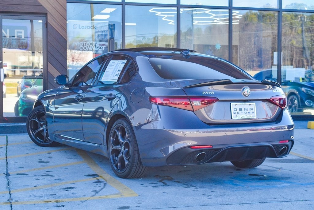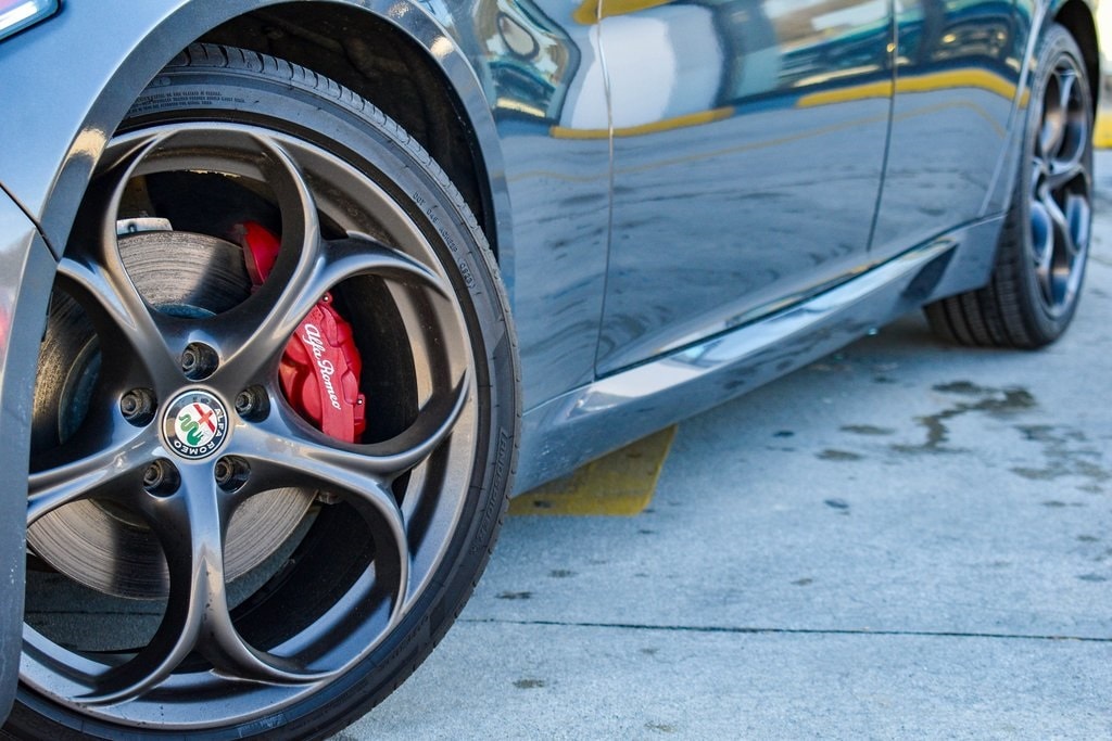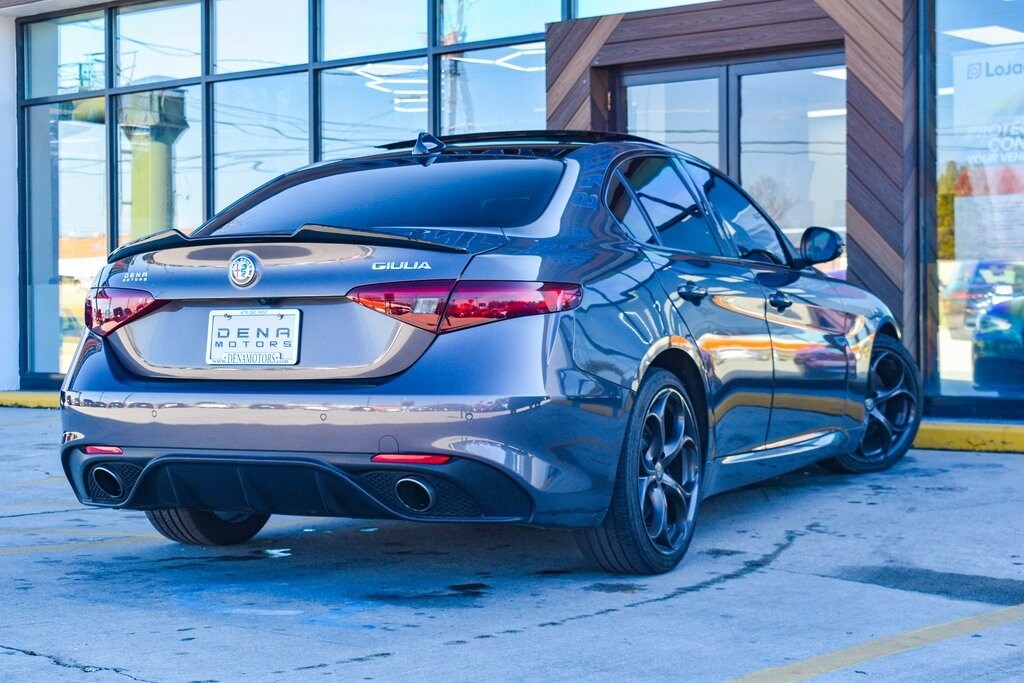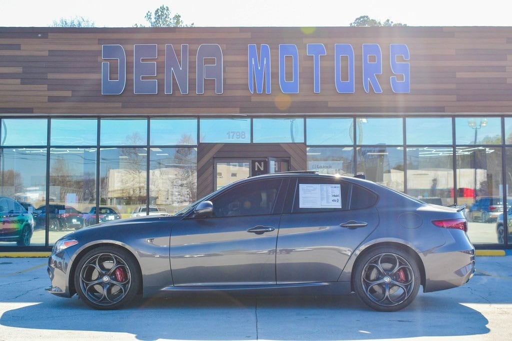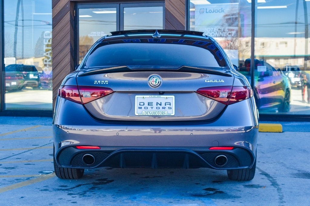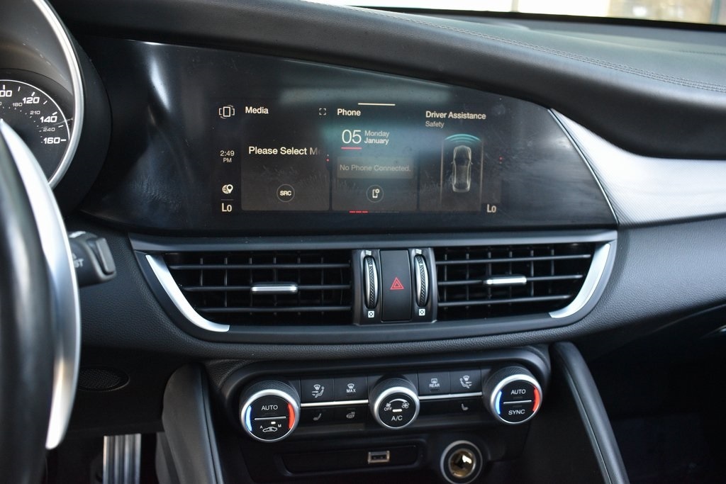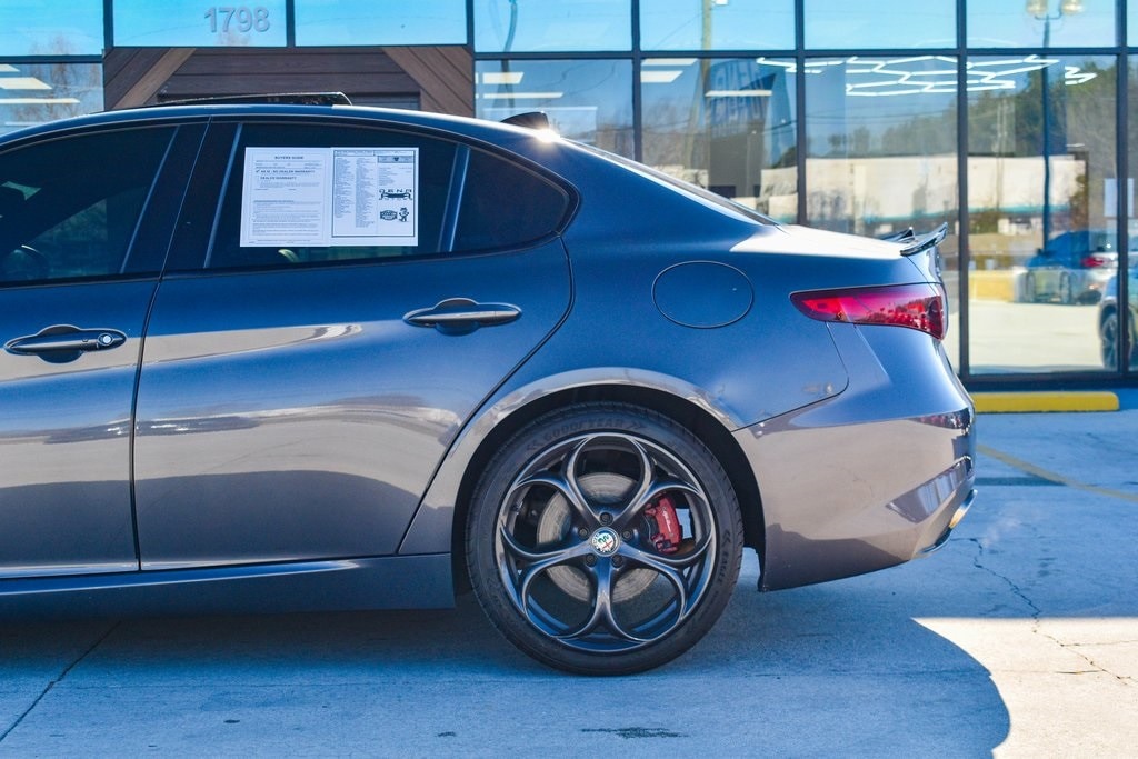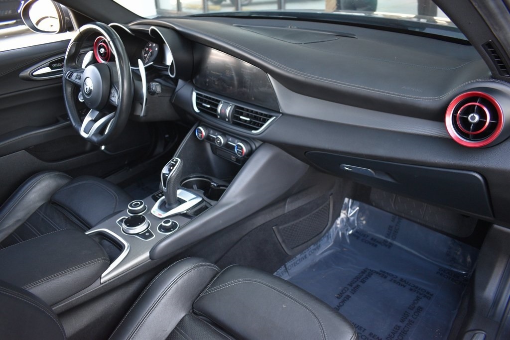 Vesuvio Gray Metallic 2020 Alfa Romeo Giulia Ti Sport RWD 8-Speed Automatic I4 14 Speakers harman/kardon Premium Audio, 4-Wheel Disc Brakes, 8 Speakers, 8.8" Touchscreen Display, ABS brakes, Air Conditioning, Air Quality System, Alloy wheels, Aluminum Interior Trim, Aluminum Steering Column Mounted Paddle Shifters, AM/FM radio: SiriusXM, Apple CarPlay/Android Auto, Auto-dimming Rear-View mirror, Automatic temperature control, Black Headliner, Brake assist, Bright Aluminum Pedals, Bumpers: body-color, Colored Brake Calipers, Compass, Delay-off headlights, Driver door bin, Driver vanity mirror, Dual front impact airbags, Dual front side impact airbags, Dual-Pane Sunroof, Electronic Stability Control, Exterior Parking Camera Rear, Four wheel independent suspension, Front anti-roll bar, Front Bucket Seats, Front Center Armrest, Front dual zone A/C, Front reading lights, Fully automatic headlights, Garage door transmitter, Genuine wood console insert, Genuine wood dashboard insert, Genuine wood door panel insert, Gloss Black Shark Fin Antenna, Gloss Red Calipers w/White Script, Heated door mirrors, Heated front seats, Heated steering wheel, High intensity discharge headlights: Bi-Xenon, Illuminated entry, Knee airbag, Leather Dash & Upper Doors, Leather Seats, Leather Shift Knob, Leather steering wheel, Low tire pressure warning, Manual Adjustable Thigh Support, Memory seat, Occupant sensing airbag, Outside temperature display, Overhead airbag, Overhead console, Panic alarm, Passenger vanity mirror, Perforated Leather Shift Knob, Power Adjust 8-Way Driver Seat, Power Adjustable Bolster, Power door mirrors, Power driver seat, Power passenger seat, Power steering, Power windows, Quick Order Package 22U Sport, Radio data system, Radio: AM/FM Bluetooth 8.8, Rain sensing wipers, Rear anti-roll bar, Rear fog lights, Rear reading lights, Rear seat center armrest, Rear window defroster, Remote keyless entry, Security system, Speed control, Speed-sensing steering, Speed-Sensitive Wipers, Split folding rear seat, Sport Front & Rear Fascias, Sport Leather Seats, Sport Leather-Wrapped Steering Wheel, Steering wheel mounted audio controls, Tachometer, Telescoping steering wheel, Ti Leather Package, Tilt steering wheel, Traction control, Trip computer, Turn signal indicator mirrors, Variably intermittent wipers, Wheels: 19" x 8.0" Bright 5-Hole Aluminum, Wireless Charging Pad.