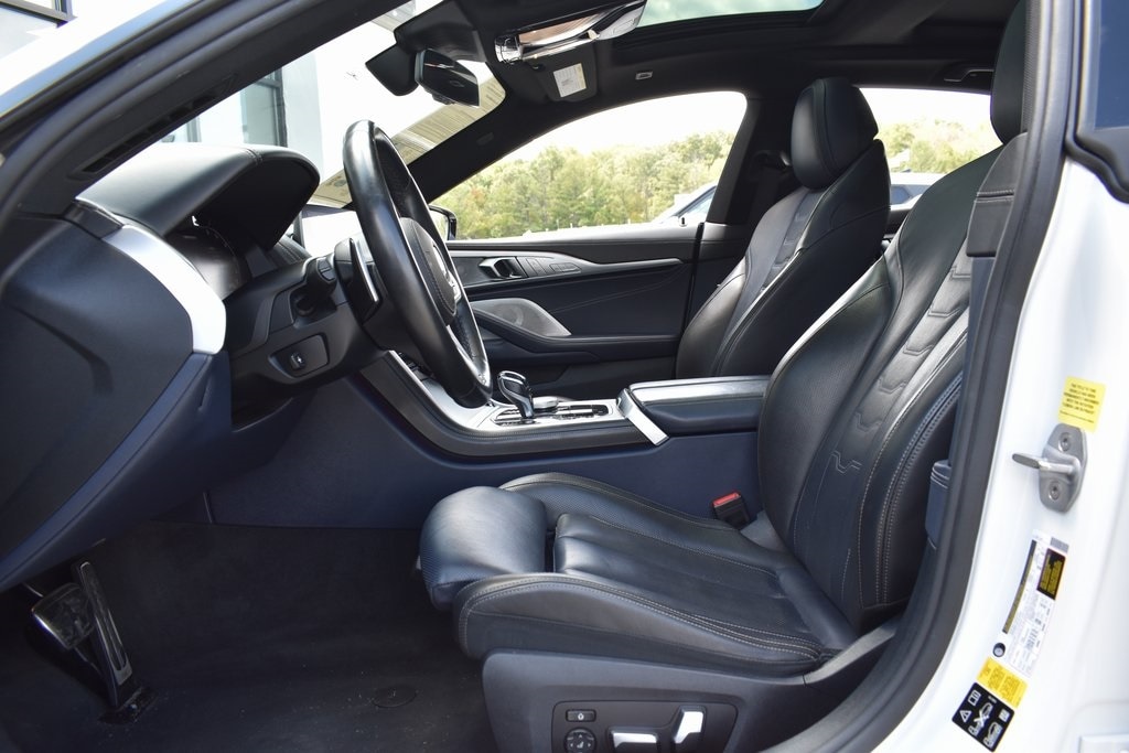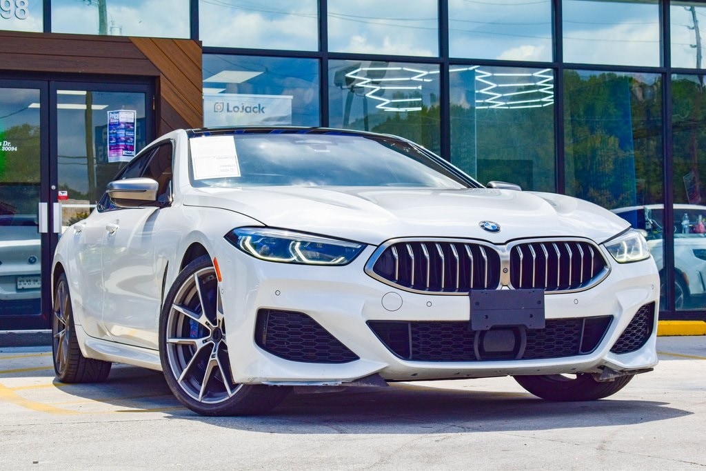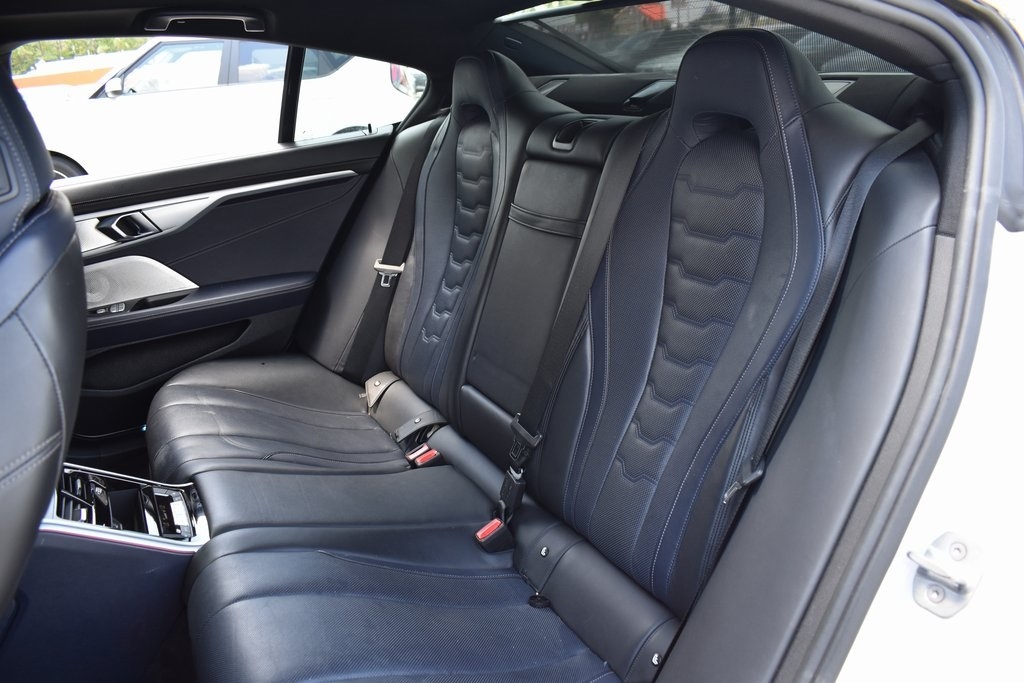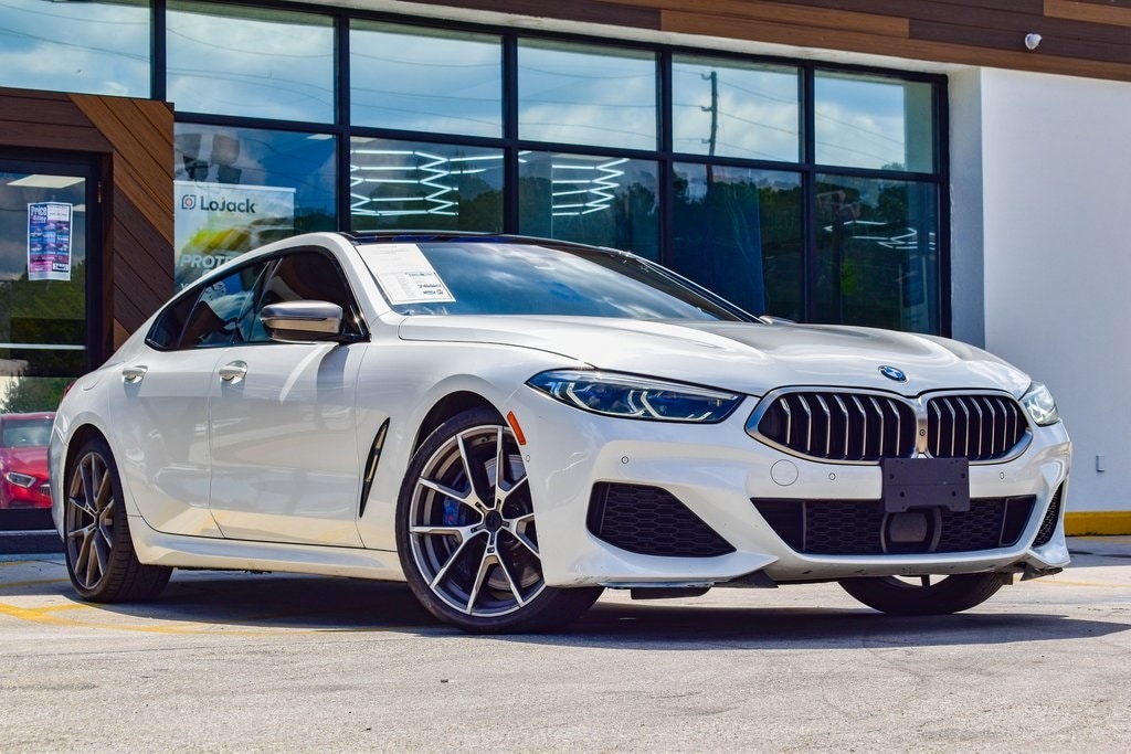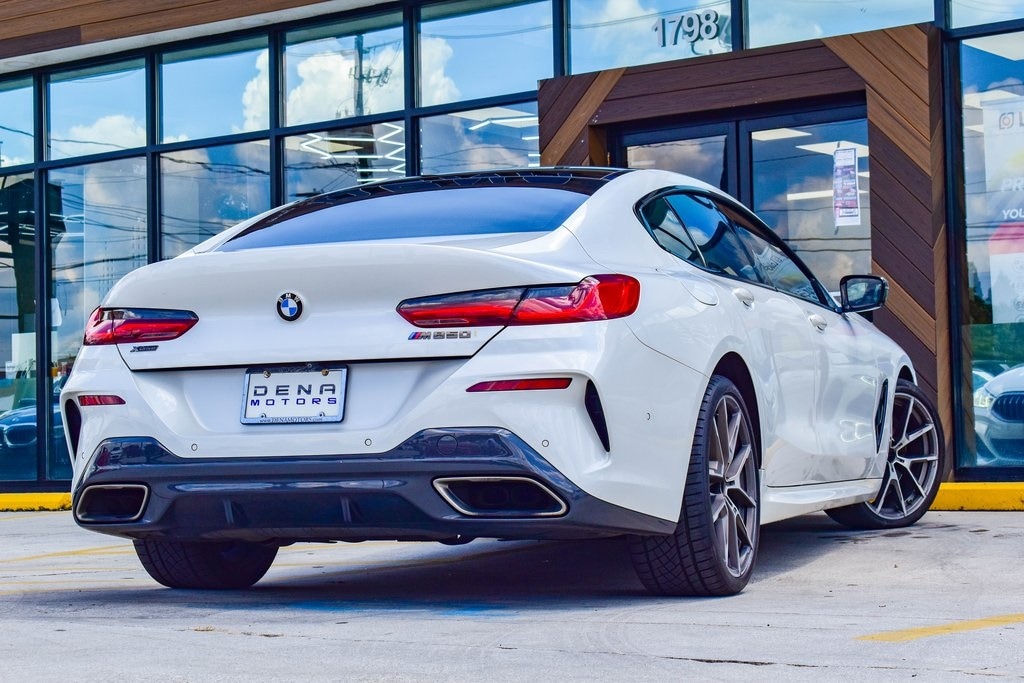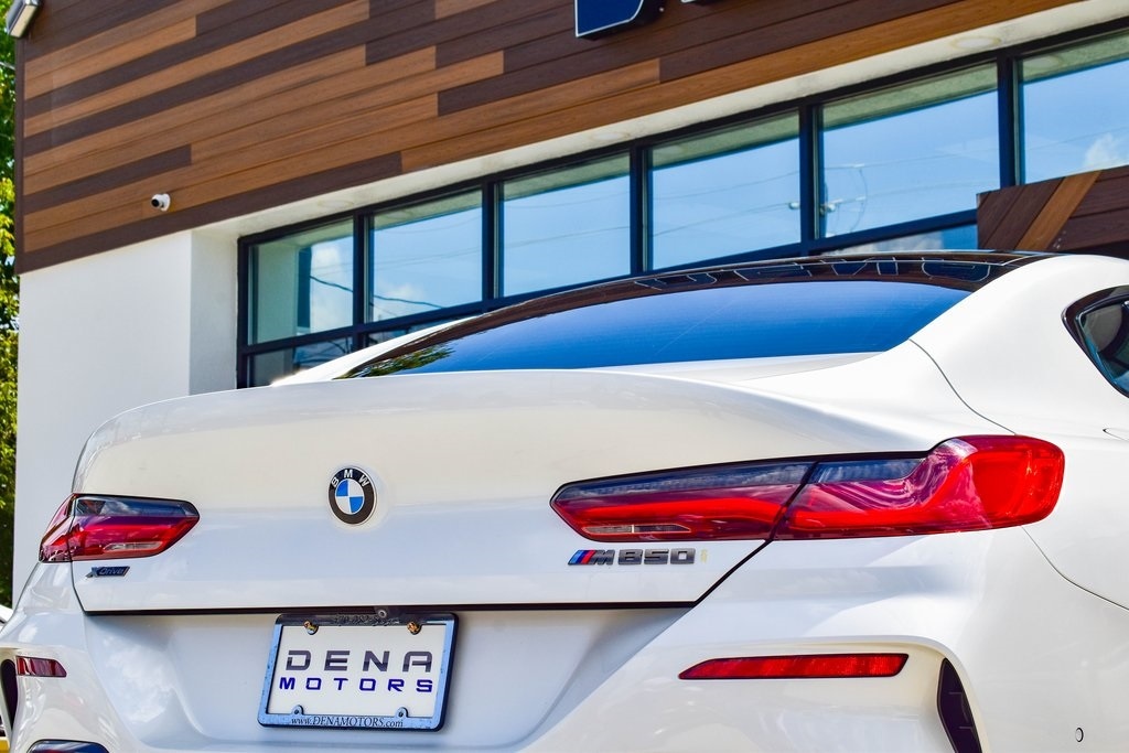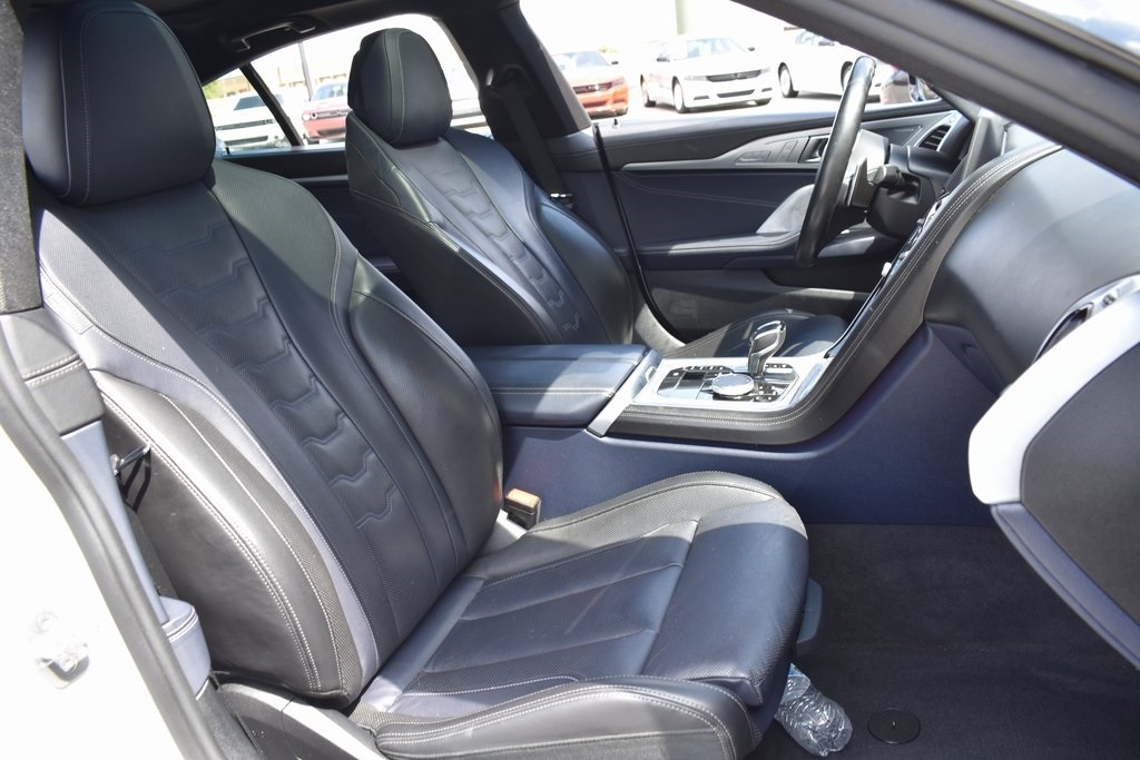 Mineral White Metallic 2020 BMW 8 Series M850i xDrive Gran Coupe AWD 8-Speed Automatic Sport 4.4L V8 32V TwinPower Turbo 16 Speakers, 4-Wheel Disc Brakes, ABS brakes, Active Blind Spot Detection, Active Driving Assistant, Active Driving Assistant Pro, Active Park Distance Control, Adaptive suspension, Air Conditioning, Alloy wheels, AM/FM radio: SiriusXM, Apple CarPlay Compatibility, Auto High-beam Headlights, Auto tilt-away steering wheel, Auto-dimming door mirrors, Auto-dimming Rear-View mirror, Automatic temperature control, Bowers & Wilkins Diamond Surround Sound System, Brake assist, Bumpers: body-color, Comfort Seating Package, Delay-off headlights, Door auto-latch, Drive Recorder, Driver door bin, Driver vanity mirror, Driving Assistance Package, Driving Assistance Professional Package, Dual front impact airbags, Dual front side impact airbags, Electronic Stability Control, Emergency communication system: BMW Assist eCall, Extended Traffic Jam Assistant, Exterior Parking Camera Rear, Four wheel independent suspension, Front & Rear Heated Seats, Front anti-roll bar, Front Bucket Seats, Front Center Armrest, Front dual zone A/C, Front reading lights, Front Ventilated Seats, Fully automatic headlights, Garage door transmitter, harman/kardon Surround Sound System, harman/kardon® Speakers, Heads-Up Display, Heated door mirrors, Heated front seats, Heated Front Seats w/Armrests & Steering Wheel, Heated steering wheel, Illuminated entry, Individual Extended Merino Leather Upholstery, Lane Departure Warning System, Leather Shift Knob, Leather steering wheel, Low tire pressure warning, Memory seat, Multi-Functional Seats, Occupant sensing airbag, Outside temperature display, Overhead airbag, Panic alarm, Parking Assistant Plus, Passenger door bin, Passenger vanity mirror, Power door mirrors, Power driver seat, Power moonroof, Power passenger seat, Power Rear Sunshade & Rear Side Window Shades, Power steering, Power windows, Radio data system, Radio: AM/FM Audio System, Rain sensing wipers, Rear air conditioning, Rear anti-roll bar, Rear dual zone A/C, Rear Window Blind, Rear window defroster, Rear-View Camera, Remote keyless entry, Security system, SiriusXM Satellite Radio, Speed control, Speed-sensing steering, Speed-Sensitive Wipers, Split folding rear seat, Sport steering wheel, Steering wheel memory, Steering wheel mounted audio controls, Surround View w/3D View, Tachometer, Telescoping steering wheel, Tilt steering wheel, Traction control, Trip computer, Turn signal indicator mirrors, Variably intermittent wipers, Ventilated front seats, Wheels: 20" x 8" Fr & 20" x 9" Rr M V-Spoke, WiFi Hotspot, Wireless Charging.