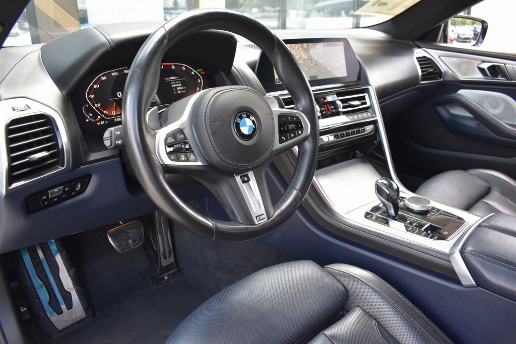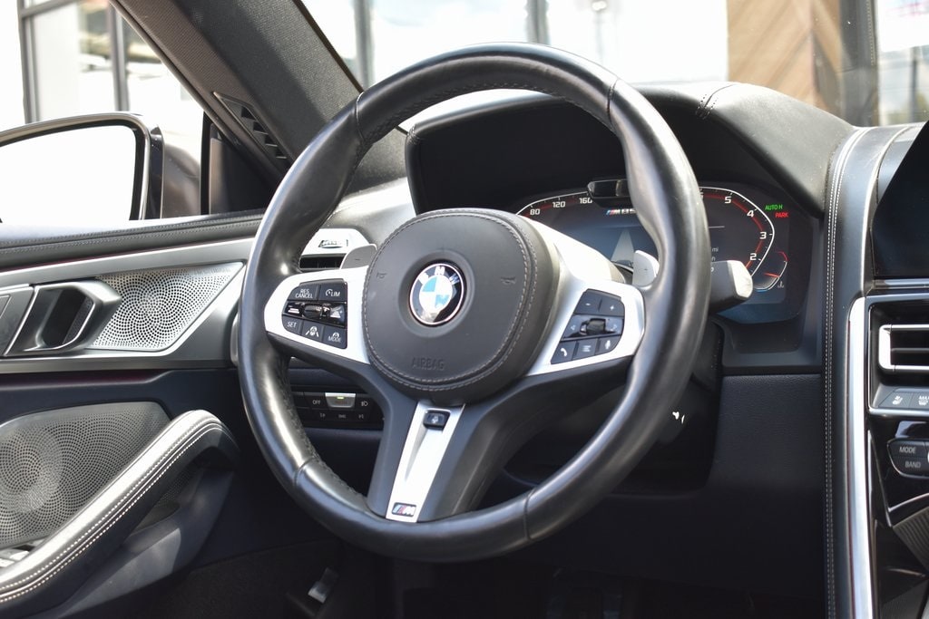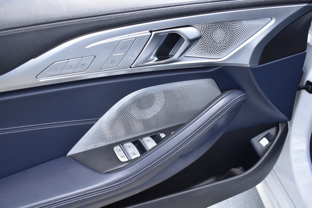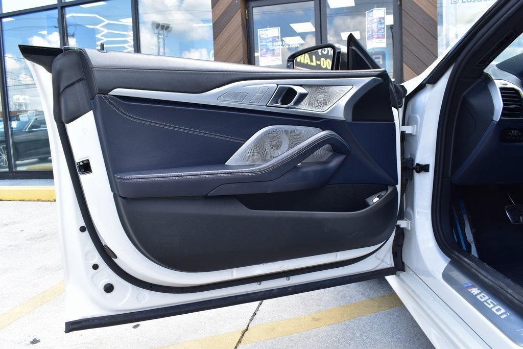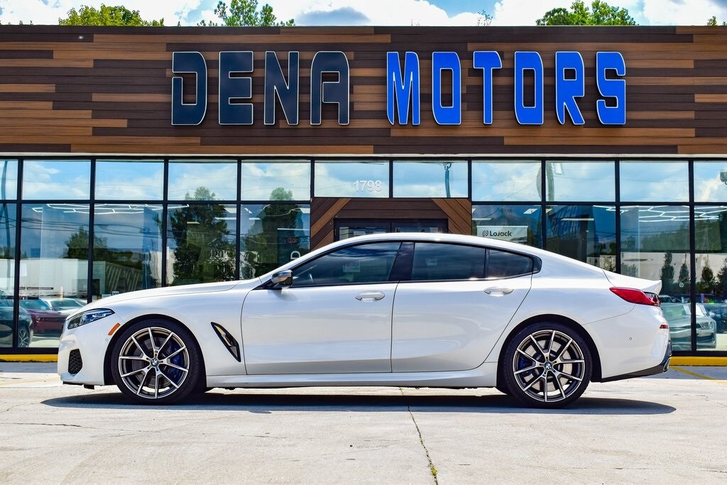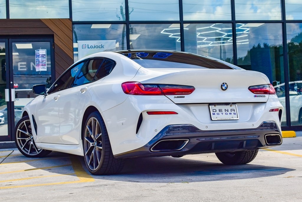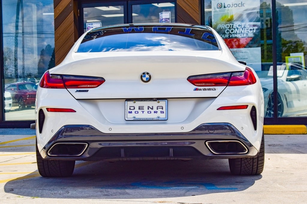 Mineral White Metallic 2020 BMW 8 Series M850i xDrive Gran Coupe AWD 8-Speed Automatic Sport 4.4L V8 32V TwinPower Turbo 16 Speakers, 4-Wheel Disc Brakes, ABS brakes, Active Blind Spot Detection, Active Driving Assistant, Active Driving Assistant Pro, Active Park Distance Control, Adaptive suspension, Air Conditioning, Alloy wheels, AM/FM radio: SiriusXM, Apple CarPlay Compatibility, Auto High-beam Headlights, Auto tilt-away steering wheel, Auto-dimming door mirrors, Auto-dimming Rear-View mirror, Automatic temperature control, Bowers & Wilkins Diamond Surround Sound System, Brake assist, Bumpers: body-color, Comfort Seating Package, Delay-off headlights, Door auto-latch, Drive Recorder, Driver door bin, Driver vanity mirror, Driving Assistance Package, Driving Assistance Professional Package, Dual front impact airbags, Dual front side impact airbags, Electronic Stability Control, Emergency communication system: BMW Assist eCall, Extended Traffic Jam Assistant, Exterior Parking Camera Rear, Four wheel independent suspension, Front & Rear Heated Seats, Front anti-roll bar, Front Bucket Seats, Front Center Armrest, Front dual zone A/C, Front reading lights, Front Ventilated Seats, Fully automatic headlights, Garage door transmitter, harman/kardon Surround Sound System, harman/kardon® Speakers, Heads-Up Display, Heated door mirrors, Heated front seats, Heated Front Seats w/Armrests & Steering Wheel, Heated steering wheel, Illuminated entry, Individual Extended Merino Leather Upholstery, Lane Departure Warning System, Leather Shift Knob, Leather steering wheel, Low tire pressure warning, Memory seat, Multi-Functional Seats, Occupant sensing airbag, Outside temperature display, Overhead airbag, Panic alarm, Parking Assistant Plus, Passenger door bin, Passenger vanity mirror, Power door mirrors, Power driver seat, Power moonroof, Power passenger seat, Power Rear Sunshade & Rear Side Window Shades, Power steering, Power windows, Radio data system, Radio: AM/FM Audio System, Rain sensing wipers, Rear air conditioning, Rear anti-roll bar, Rear dual zone A/C, Rear Window Blind, Rear window defroster, Rear-View Camera, Remote keyless entry, Security system, SiriusXM Satellite Radio, Speed control, Speed-sensing steering, Speed-Sensitive Wipers, Split folding rear seat, Sport steering wheel, Steering wheel memory, Steering wheel mounted audio controls, Surround View w/3D View, Tachometer, Telescoping steering wheel, Tilt steering wheel, Traction control, Trip computer, Turn signal indicator mirrors, Variably intermittent wipers, Ventilated front seats, Wheels: 20" x 8" Fr & 20" x 9" Rr M V-Spoke, WiFi Hotspot, Wireless Charging.