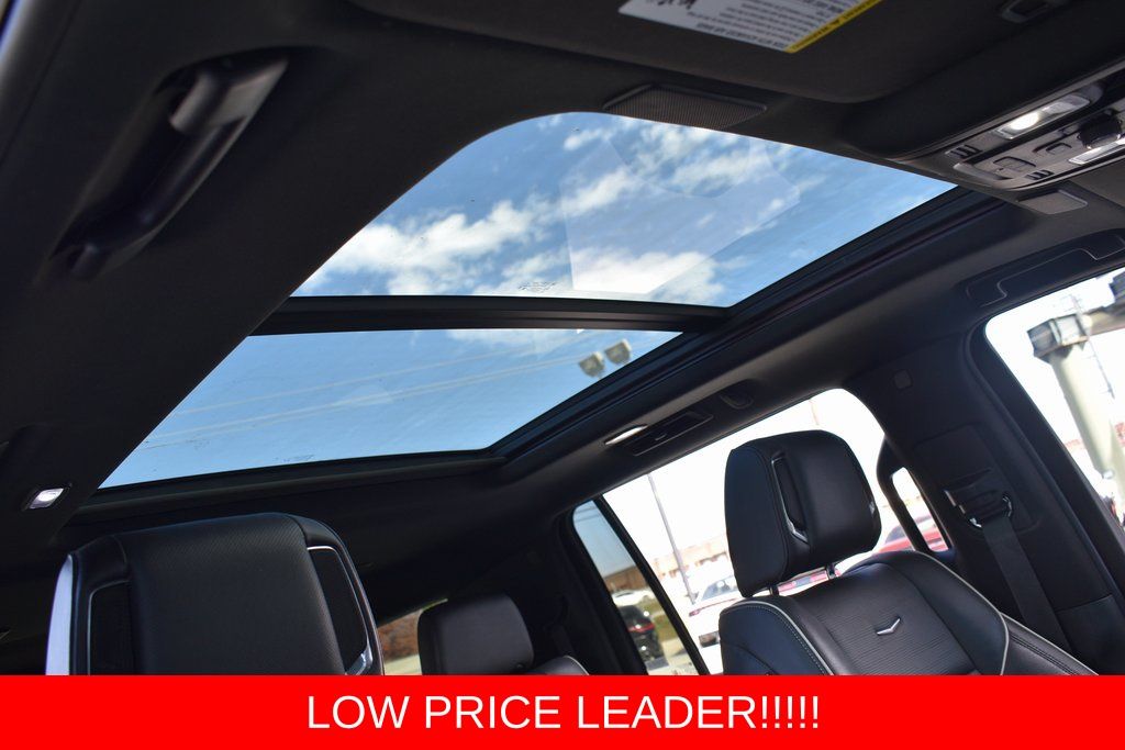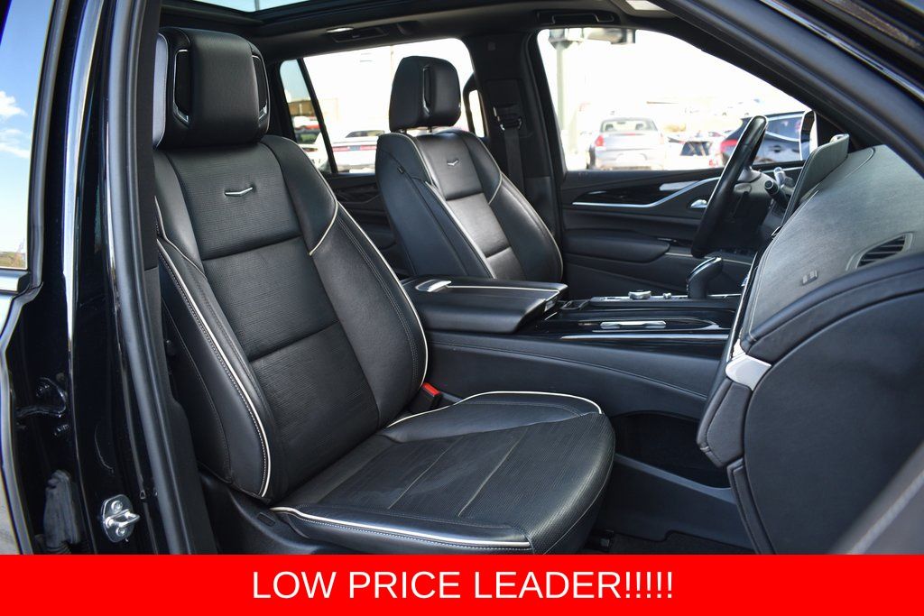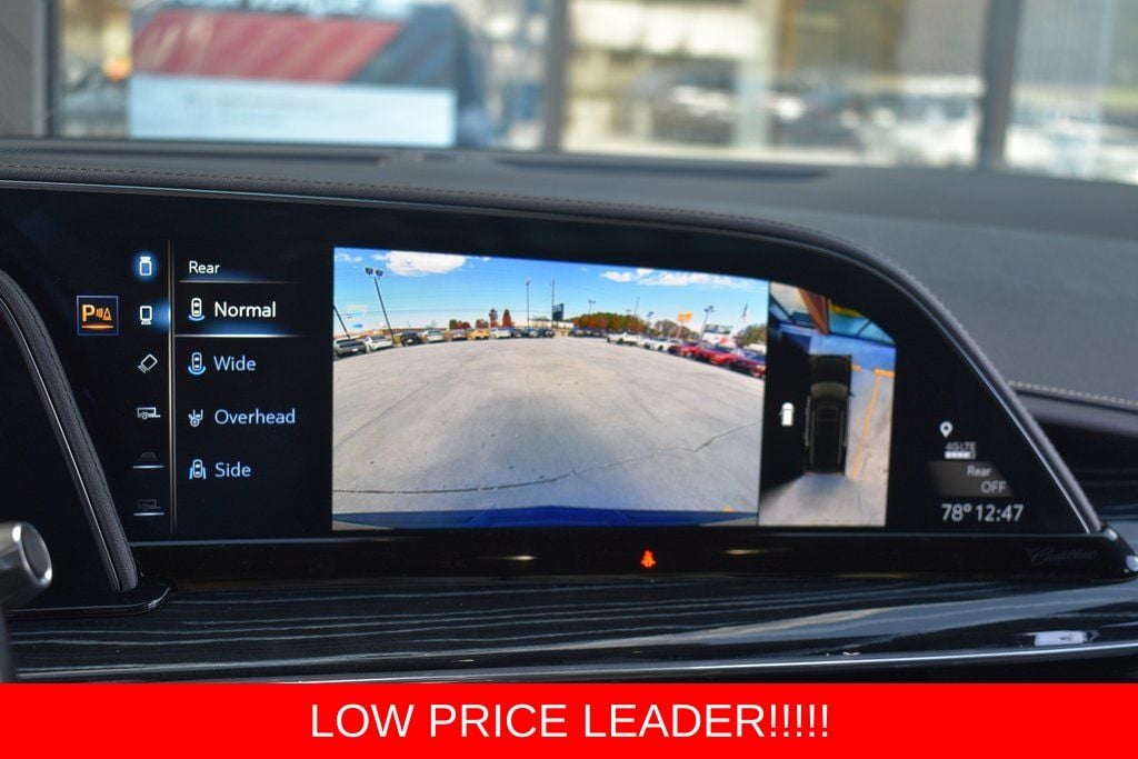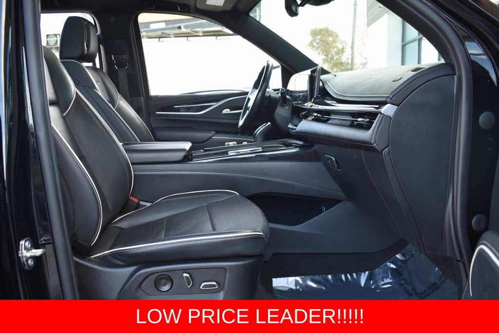 Inside, youre surrounded by Cadillacs most advanced technology, including a curved **OLED display suite**, **embedded navigation**, **wireless Apple CarPlay and Android Auto**, a premium **AKG Studio 19-speaker audio system**, **head-up display**, and a panoramic power sunroof. Luxury touches abound with **heated and ventilated front seats**, **heated second-row seats**, **power-folding third row**, and hands-free power liftgate convenience. Safety and driver confidence are elevated with a full suite of advanced features, highlighted by **Super Cruise hands-free driving capability**, automatic emergency braking, blind zone alert, lane keep assist, and more.
