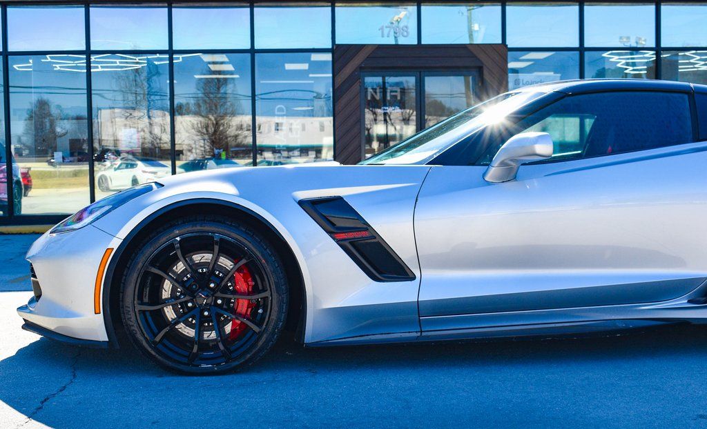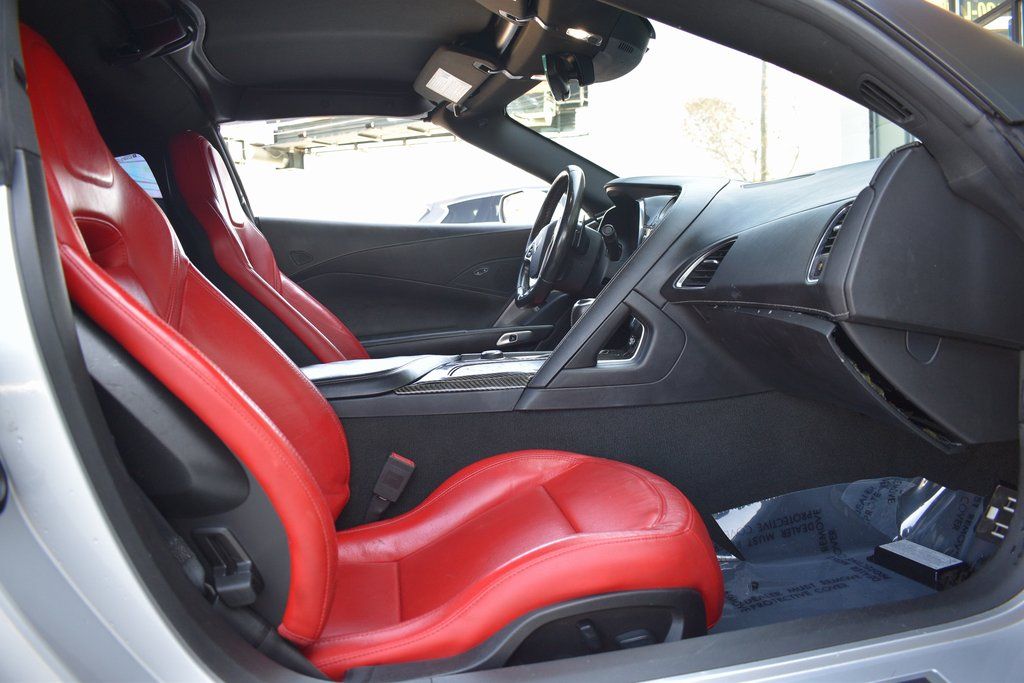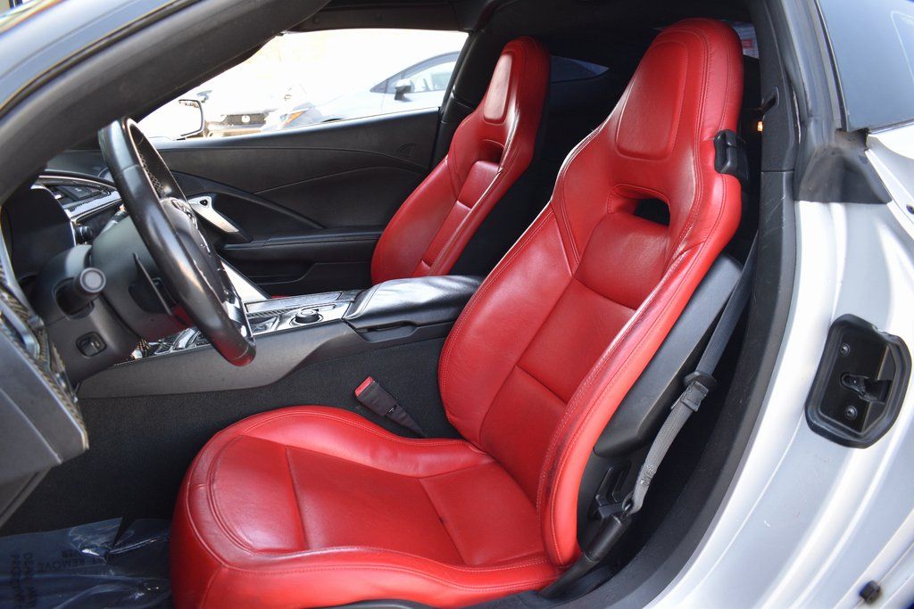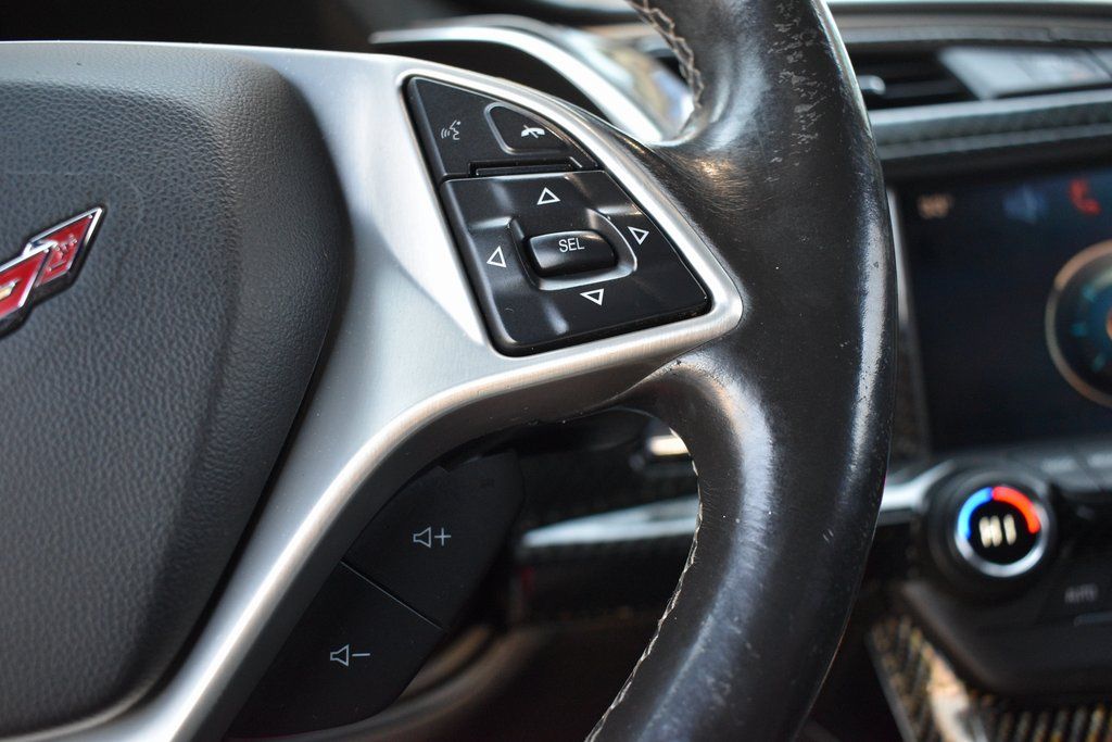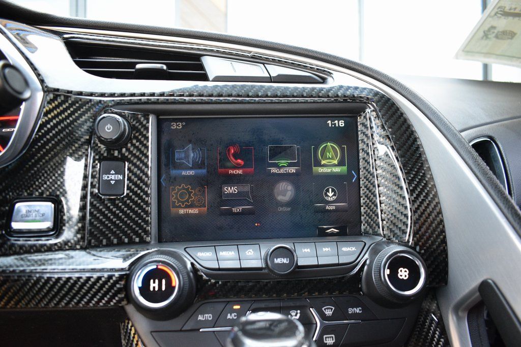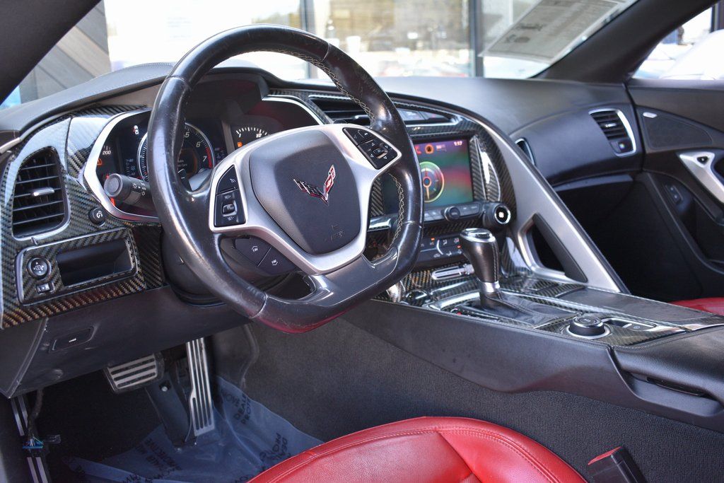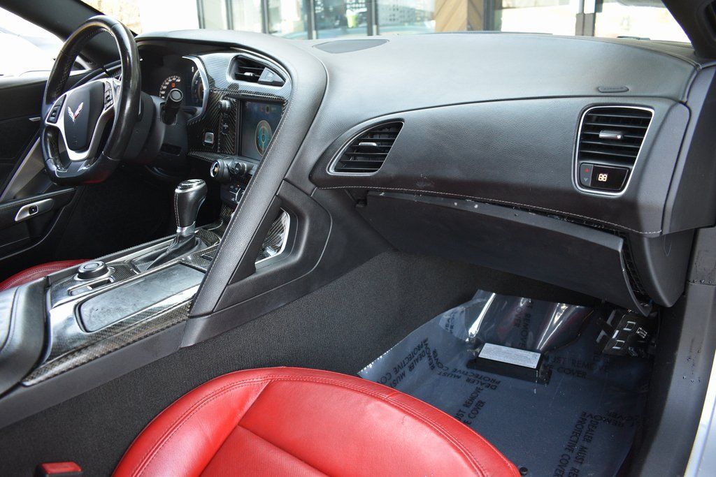 This vehicle comes equipped with Battery Protection Package, Carbon Flash Badge Package, Preferred Equipment Group 1LT, 2.73 Limited Slip Performance Rear Axle Ratio, 4-Wheel Disc Brakes, 8-Way Driver & Passenger Seat Adjusters, 9 Speakers, ABS brakes, Adaptive suspension, Air Conditioning, Alloy wheels, AM/FM radio: SiriusXM, Apple CarPlay/Android Auto, Automatic temperature control, Bose Premium 9-Speaker Audio System Feature, Bumpers: body-color, Carbon Flash Hood Stinger Stripe, Compass, Delay-off headlights, Driver door bin, Driver vanity mirror, Dual front impact airbags, Dual front side impact airbags, Electronic Stability Control, Emergency communication system, Exterior Parking Camera Rear, Four wheel independent suspension, Front anti-roll bar, Front Bucket Seats, Front Center Armrest, Front dual zone A/C, Front reading lights, Fully automatic headlights, GT Bucket Seats, Heads-Up Display, Heated door mirrors, High-Intensity Discharge Headlights, Illuminated entry, Leather Shift Knob, Leather steering wheel, Low tire pressure warning, Occupant sensing airbag, Outside temperature display, Painted Body-Color Carbon Fiber Removable Roof Panel, Panic alarm, Passenger door bin, Passenger vanity mirror, Power door mirrors, Power driver seat, Power passenger seat, Power steering, Power windows, Radio data system, Radio: Chevrolet Infotainment System, Rear anti-roll bar, Rear window defroster, Red-Painted Calipers, Remote keyless entry, Remote Vehicle Starter System, Speed control, Speed-sensing steering, Spoiler, Sport steering wheel, Steering wheel mounted audio controls, Tachometer, Telescoping steering wheel, Tilt steering wheel, Traction control, Trip computer, Variably intermittent wipers, Voltmeter, Wheel Locks, Wheels: 19" x 10" Fr & 20" x 12" Rr Grand Sport, and Wheels: 19" x 10" Fr & 20" x 12" Rr Grand Sport Pearl .