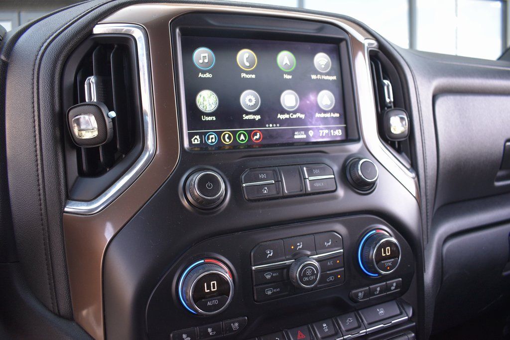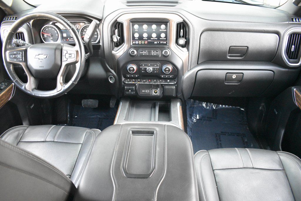 This vehicle comes equipped with High Country Deluxe (All-Weather Floor Liner (LPO) and Power Sunroof), Preferred Equipment Group 3LZ (10-Way Power Driver Seat w/Lumbar, 10-Way Power Passenger Seat Adjuster w/Lumbar, 12-Volt Rear Auxiliary Power Outlet, 120-Volt Bed Mounted Power Outlet, 120-Volt Instrument Panel Power Outlet, 170 Amp Alternator, 2nd Row Heated Outboard Seats, 8" Driver Information Center, Advanced Trailering System, Auto-Dimming Inside Rear-View Mirror, Auxiliary External Transmission Oil Cooler, Bluetooth® For Phone, Chevrolet Connected Access, Chevrolet w/4G LTE, Chevytec Spray-On Black Bedliner, Chrome Assist Steps, Chrome Grille, Chrome Recovery Hooks, Color-Keyed Carpeting Floor Covering, Compass, Deep-Tinted Glass, Driver Memory, Dual Exhaust w/Polished Outlets, Electric Rear-Window Defogger, Electrical Lock Control Steering Column, Electronic Cruise Control, Floor Mounted Console, Front Carpeted Floor Mats, Front LED Fog Lamps, HD Radio, HD Rear Vision Camera, Heated Driver & Front Passenger Seats, Heated Steering Wheel, Heavy-Duty Rear Locking Differential, Hitch Guidance, Hitch Guidance w/Hitch View, Integrated Trailer Brake Controller, Keyless Open & Start, Lane Change Alert w/Side Blind Zone Alert, Leather Wrapped Steering Wheel, LED Cargo Area Lighting, Manual Tilt/Telescoping Steering Column, OnStar & Chevrolet Connected Services Capable, Outside Heated Power-Adjustable Mirrors, Painted Mirror Caps, Power Door Locks, Power Front Passenger Windows w/Express Up/Down, Power Front Windows w/Driver Express Up/Down, Power Rear Windows w/Express Down, Power Sliding Rear Window w/Rear Defogger, Rear Carpeted Floor Mats, Rear Cross Traffic Alert, Rear Dual USB Charging-Only Ports, Rear Wheelhouse Liners, Remote Vehicle Starter System, SiriusXM Radio, Steering Wheel Audio Controls, Theft Deterrent System (Unauthorized Entry), Trailer Tire Pressure Monitor System, Ultrasonic Front & Rear Park Assist, Universal Home Remote, Ventilated Driver & Front Passenger Seats, and Wireless Charging), Safety Package II (Following Distance Indicator, Forward Collision Alert, Front Pedestrian Braking, IntelliBeam Automatic High Beam On/Off, Lane Keep Assist w/Lane Departure Warning, Low Speed Forward Automatic Braking, and Safety Alert Seat), Technology Package (15" Diagonal Head-Up Display, HD Surround Vision, and Rear Camera Mirror), Trailering Package, Up-Level Rear Seat w/Storage Package, 10-Speed Automatic, 4WD, Jet Black Leather, 3.23 Rear Axle Ratio, 4-Wheel Disc Brakes, 7 Speakers, ABS brakes, Air Conditioning, Alloy wheels, AM/FM radio: SiriusXM, Apple CarPlay/Android Auto, Auto-dimming door mirrors, Auto-dimming Rear-View mirror, Automatic temperature control, Brake assist, Bumpers: body-color, Delay-off headlights, Driver door bin, Driver vanity mirror, Dual front impact airbags, Dual front side impact airbags, Electronic Stability Control, Front anti-roll bar, Front Black Bowtie Emblem (LPO), Front Bucket Seats, Front Center Armrest w/Storage, Front dual zone A/C, Front fog lights, Front reading lights, Front wheel independent suspension, Fully automatic headlights, Garage door transmitter, Heated door mirrors, Heated front seats, Heated rear seats, Heated steering wheel, Heavy Duty Suspension, Illuminated entry, Low tire pressure warning, Memory seat, Navigation System, Occupant sensing airbag, Outside temperature display, Overhead airbag, Overhead console, Panic alarm, Passenger door bin, Passenger vanity mirror, Perforated Leather Appointed Seat Trim, Power door mirrors, Power driver seat, Power passenger seat, Power steering, Power windows, Premium audio system: Chevrolet Infotainment System 3, Radio data system, Radio: Chevrolet Infotainment 3 Premium System, Rear reading lights, Rear seat center armrest, Rear step bumper, Rear window defroster, Remote keyless entry,