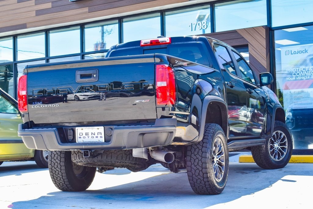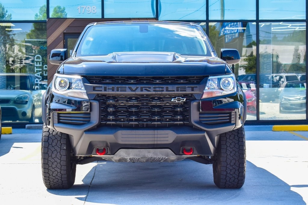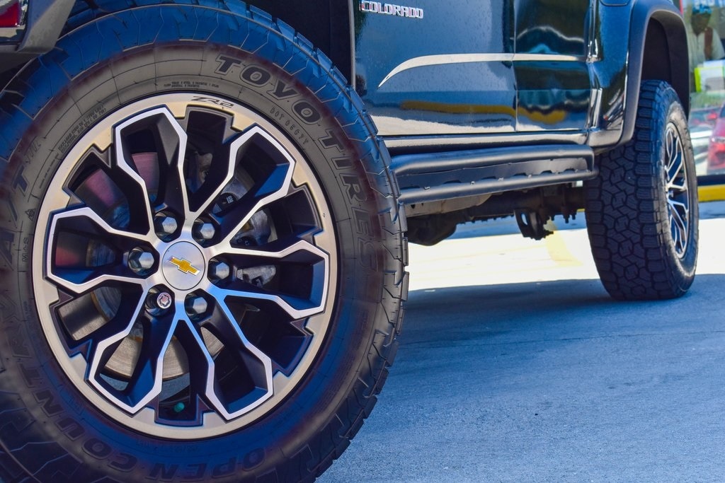 Black 2022 Chevrolet Colorado ZR2 4WD 6-Speed Automatic 2.8L Duramax Turbodiesel 4WD, 2 USB Data Ports w/SD Card Reader, 3.42 Rear Axle Ratio, 4-Way Power Front Passenger Seat Adjuster, 4-Wheel Disc Brakes, 6 Speakers, 6-Speaker Audio System Feature, ABS brakes, Air Conditioning, Alloy wheels, AM/FM radio: SiriusXM, Apple CarPlay/Android Auto, Auto-dimming Rear-View mirror, Automatic temperature control, Black Rear Bumpers, Black Spray-On Bedliner w/Chevrolet Logo, Bose Premium 7-Speaker Audio System Feature, Compass, Delay-off headlights, Driver 6-Way Power Seat Adjuster, Driver door bin, Driver vanity mirror, Driver-Selectable Full-Locking Front Differential, Driver-Selectable Full-Locking Rear Differential, Dual front impact airbags, Dual front side impact airbags, Electronic Stability Control, Exhaust Brake, Exterior Parking Camera Rear, Front anti-roll bar, Front Bucket Seats, Front Center Armrest, Front reading lights, Front wheel independent suspension, Fully automatic headlights, HD Radio, Heated door mirrors, Heated steering wheel, Heavy-Duty Trailering Package, Hitch Guidance, Illuminated entry, Integrated Trailer Brake Controller, Leather-Appointed Seat Trim, Low tire pressure warning, Navigation System, Not Equipped w/Heated Front Seats, Occupant sensing airbag, Outside temperature display, Overhead airbag, Overhead console, Panic alarm, Passenger door bin, Passenger vanity mirror, Power door mirrors, Power Driver Lumbar Control Seat Adjuster, Power driver seat, Power Passenger Lumbar Control Seat Adjuster, Power passenger seat, Power steering, Power windows, Preferred Equipment Group 4ZR, Premium audio system: Chevrolet Infotainment 3 Plus, Radio data system, Radio: Chevrolet Infotainment 3 Plus System, Radio: Chevrolet Infotainment 3 Plus System w/Navi, Rear reading lights, Rear seat center armrest, Rear step bumper, Rear window defroster, Remote keyless entry, Security system, SiriusXM Radio, Speed control, Speed-sensing steering, Steering wheel mounted audio controls, Tachometer, Telescoping steering wheel, Tilt steering wheel, Tow/Haul Mode, Traction control, Trip computer, Variably intermittent wipers, Wheels: 17" x 8" Graphite & Oxide Gold Aluminum, Wireless Charging for Compatible Cell Phones, ZR2 Off-Road Package.