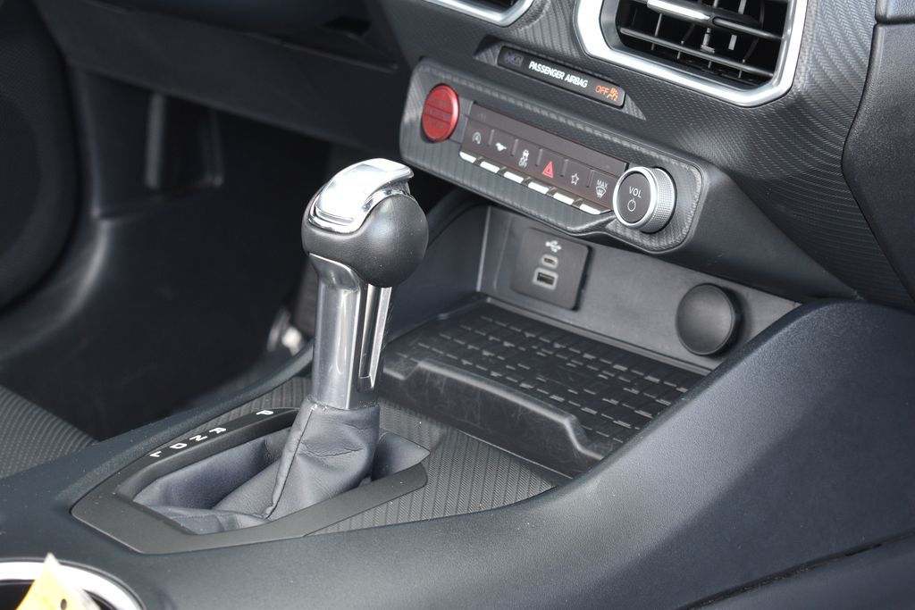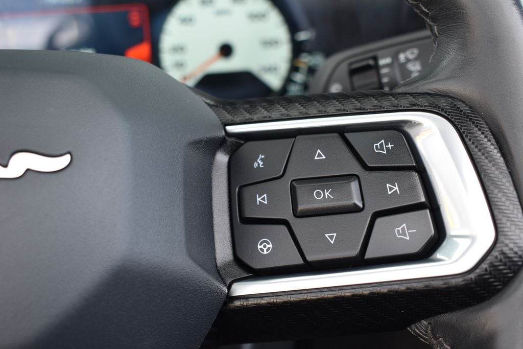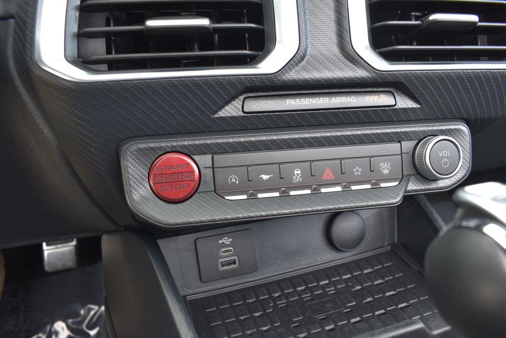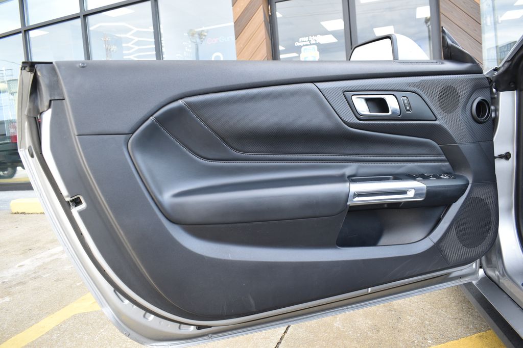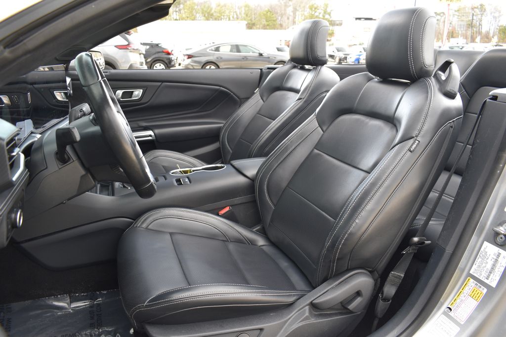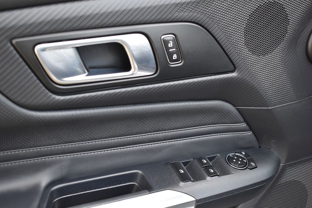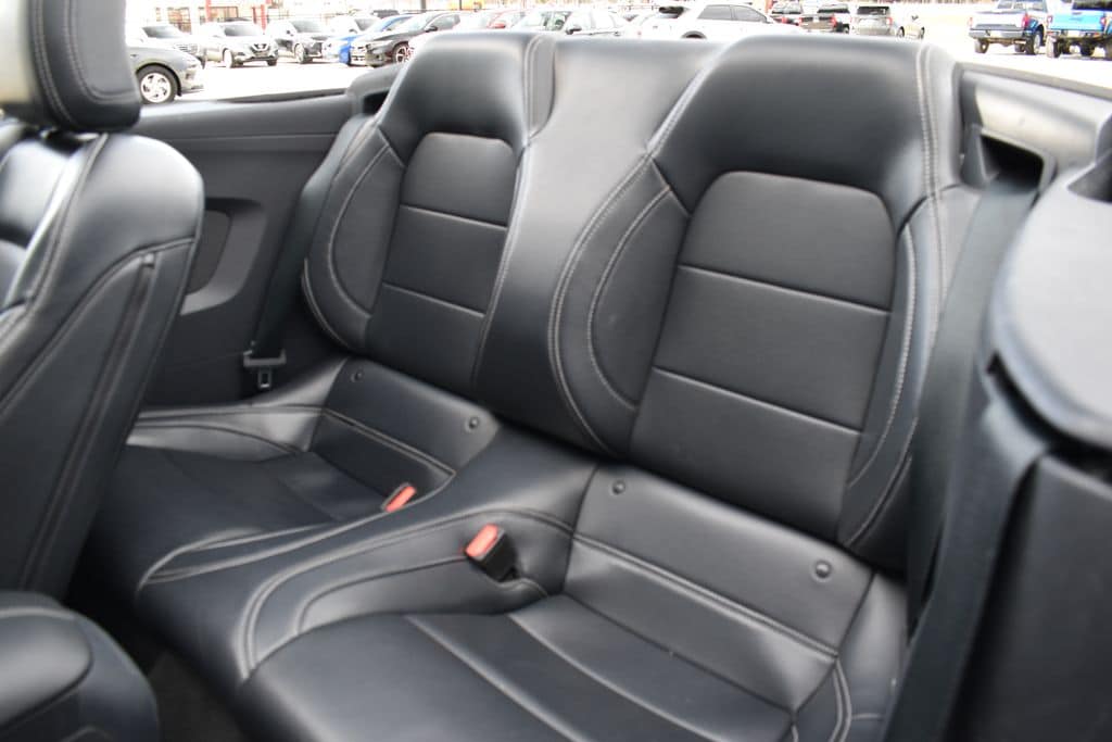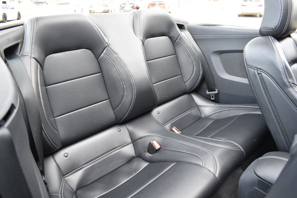 This vehicle comes equipped with 4-Wheel Disc Brakes, 9 Speakers, ABS brakes, Air Conditioning, Alloy wheels, AM/FM radio: SiriusXM with 360L, AM/FM Stereo, Auto High-beam Headlights, Automatic temperature control, Brake assist, Bumpers: body-color, Compass, Convertible roof lining, Delay-off headlights, Driver door bin, Driver vanity mirror, Dual front impact airbags, Dual front side impact airbags, Electronic Stability Control, Emergency communication system: 911 Assist, Exterior Parking Camera Rear, Four wheel independent suspension, Front anti-roll bar, Front Bucket Seats, Front Center Armrest, Front dual zone A/C, Front reading lights, Fully automatic headlights, Glass rear window, Heated front seats, Illuminated entry, Knee airbag, Leather Shift Knob, Low tire pressure warning, Occupant sensing airbag, Outside temperature display, Overhead console, Panic alarm, Passenger door bin, Passenger vanity mirror, Power convertible roof, Power door mirrors, Power driver seat, Power steering, Power windows, Radio data system, Rain sensing wipers, Rear anti-roll bar, Rear Parking Sensors, Rear window defroster, Remote keyless entry, Security system, Speed control, Speed-sensing steering, Speed-Sensitive Wipers, Sport steering wheel, Steering wheel mounted audio controls, SYNC 4.0 QNX, Tachometer, Telescoping steering wheel, Tilt steering wheel, Traction control, Trip computer, Variably intermittent wipers, Voltmeter, and Wheels: 18" x 8" Machined-Face Aluminum .