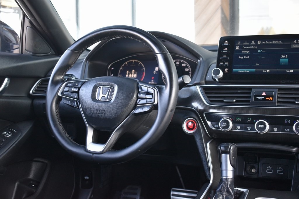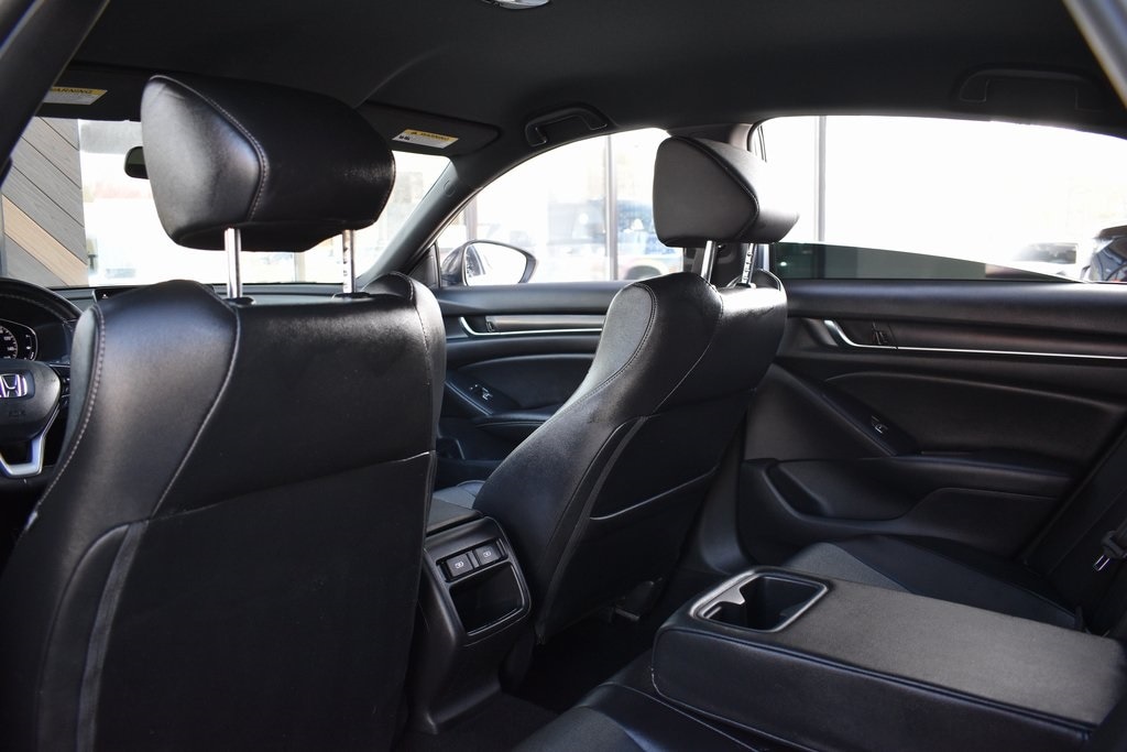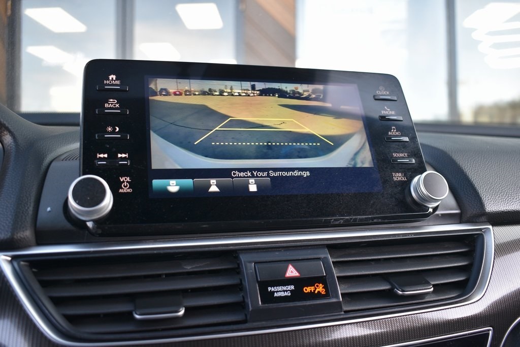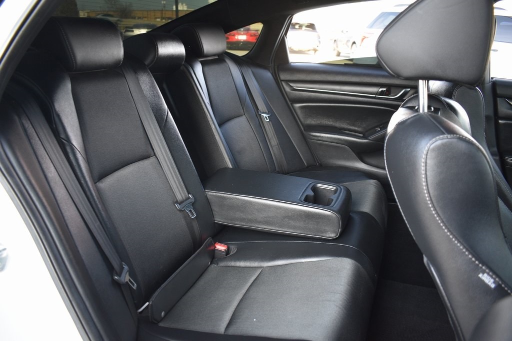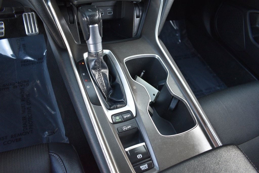 This vehicle comes equipped with Black Cloth, 4-Wheel Disc Brakes, 8 Speakers, ABS brakes, Adaptive Cruise Control: Adaptive Cruise Control (ACC) with Low-Speed Follow, Air Conditioning, Alloy wheels, AM/FM radio, Apple CarPlay/Android Auto, Auto High-beam Headlights, Automatic temperature control, Brake assist, Bumpers: body-color, Cloth Seat Trim, Delay-off headlights, Driver door bin, Driver vanity mirror, Dual front impact airbags, Dual front side impact airbags, Electronic Stability Control, Emergency communication system: HondaLink, Exterior Parking Camera Rear, Forward collision: Collision Mitigation Braking System (CMBS) + FCW mitigation, Four wheel independent suspension, Front anti-roll bar, Front Bucket Seats, Front Center Armrest, Front dual zone A/C, Front fog lights, Front reading lights, Fully automatic headlights, Illuminated entry, Knee airbag, Lane Departure Warning System, Leather Shift Knob, Leather steering wheel, Low tire pressure warning, Occupant sensing airbag, Outside temperature display, Overhead airbag, Overhead console, Panic alarm, Passenger door bin, Passenger vanity mirror, Power door mirrors, Power driver seat, Power steering, Power windows, Radio data system, Radio: 180-Watt AM/FM Audio System, Rear anti-roll bar, Rear seat center armrest, Rear window defroster, Remote keyless entry, Security system, Speed control, Speed-sensing steering, Speed-Sensitive Wipers, Split folding rear seat, Spoiler, Steering wheel mounted audio controls, Tachometer, Telescoping steering wheel, Tilt steering wheel, Traction control, Trip computer, Variably intermittent wipers, and Wheels: 19" Machine-Finished Alloy w/Black Inserts .