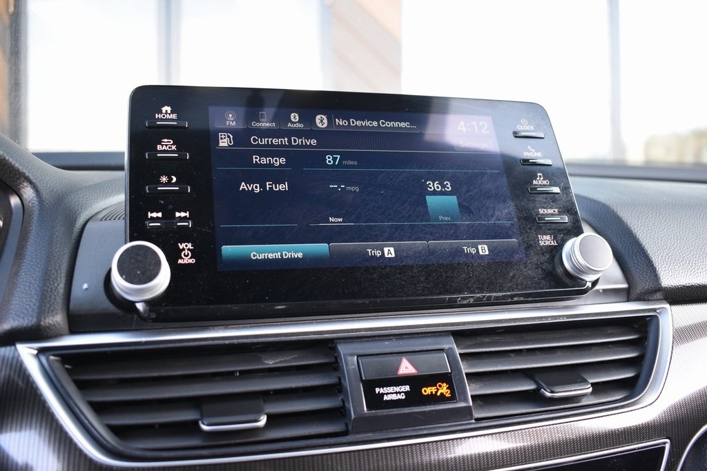 This Accord has made me happy. I had to purchase it quickly after my A5 was totaled and my insurance company gave me little time in a rental. With mostly around town driving I was able to see how having the torque down low was of great benefit. I traveled to Austin to COTA and while on the toll roads 85 - 90 was comfortable and quiet. I kept driving on that tank until Thursday and was happy to avg 33.8 MPG of mixed Hwy and City. I tend to have a lead foot and obtaining that surprised me. I have played with many of the electronic systems and love the integration of these systems. If you explore the car systems, you will find items that will make ownership more enjoyable. Smooth when you want it, capable when you need it. HUGE trunk and backseat doesnt hurt. - 5.0