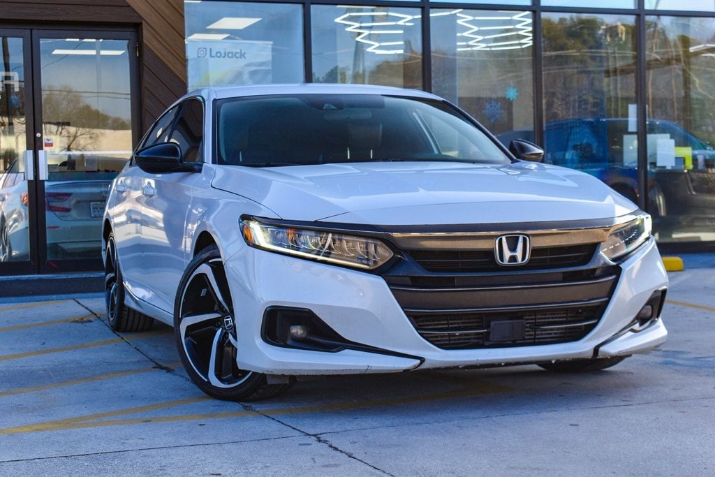White 2021 Honda Accord Sport FWD CVT 1.5T I4 DOHC 16V Turbocharged VTEC Black Cloth.