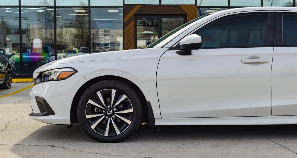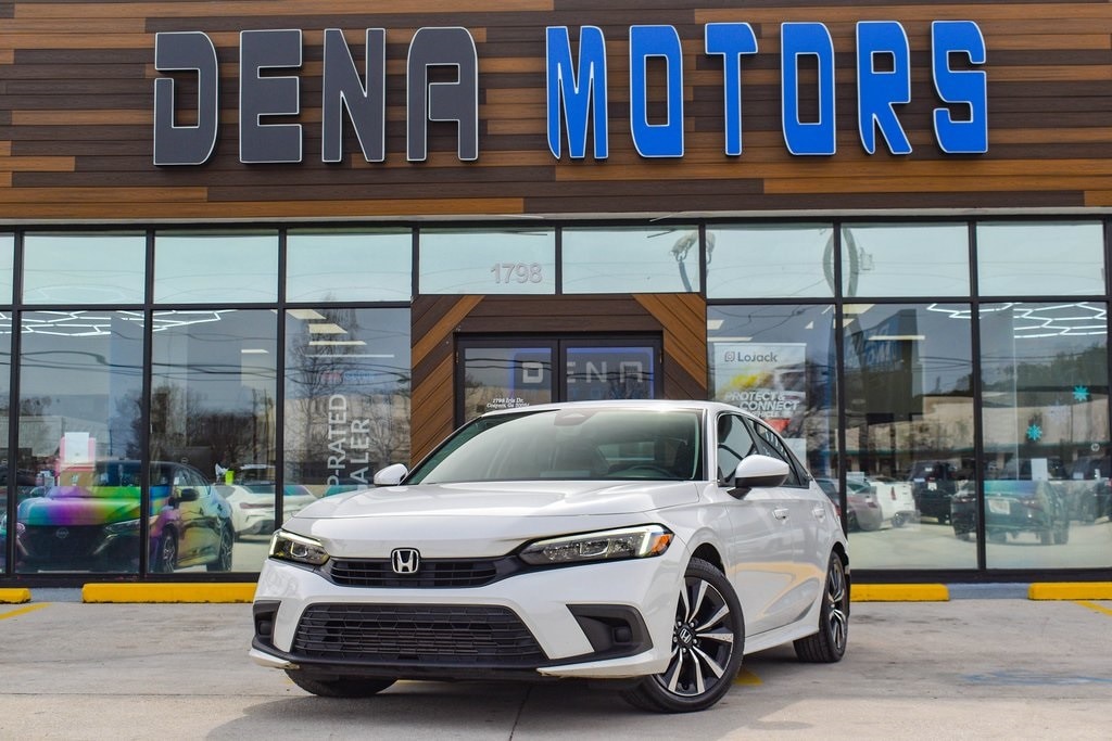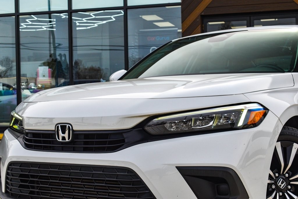 White 2023 Honda Civic EX FWD CVT 1.5L I-4 DI DOHC Turbocharged Black Cloth.