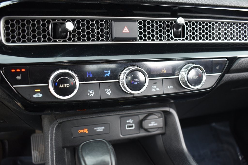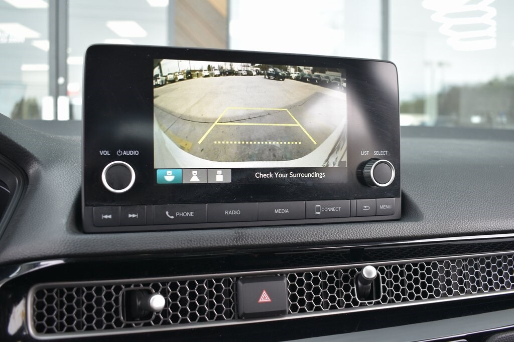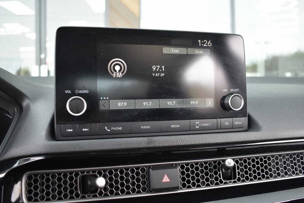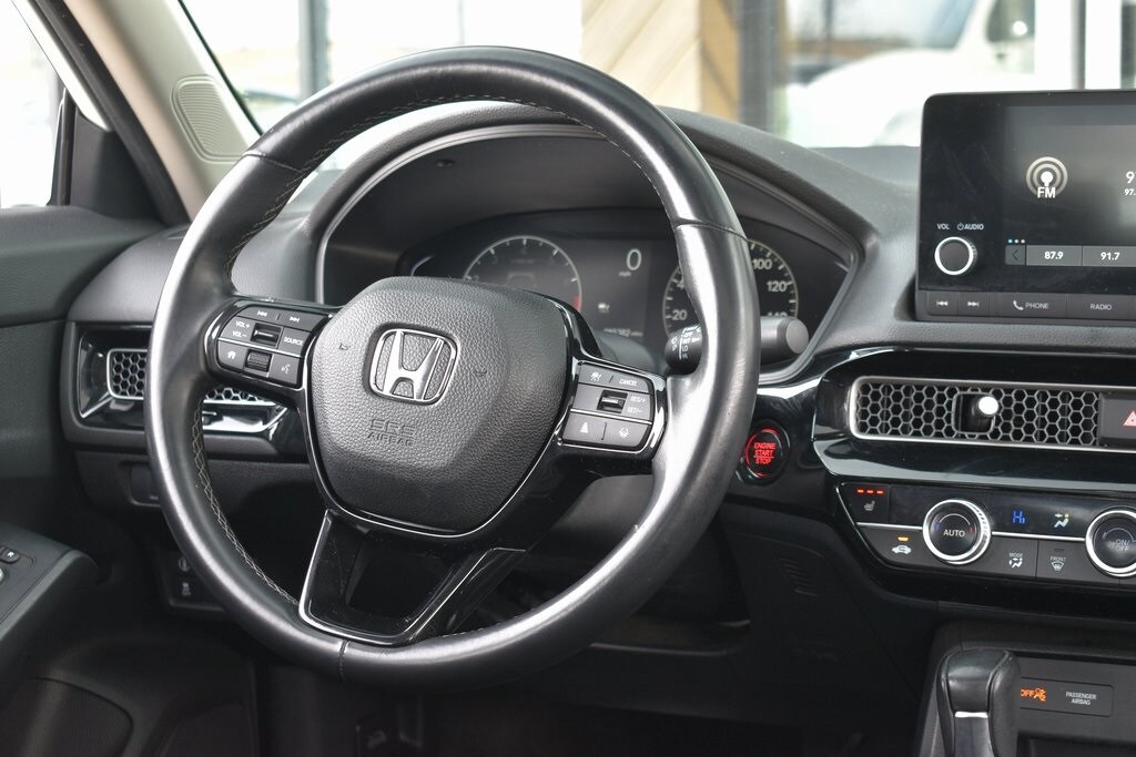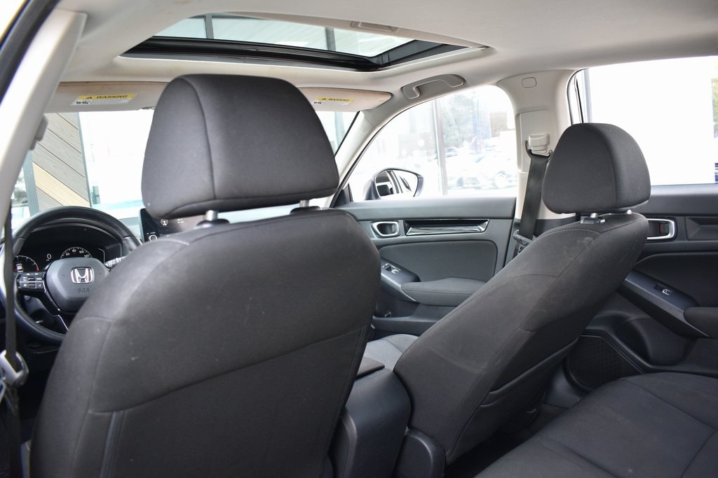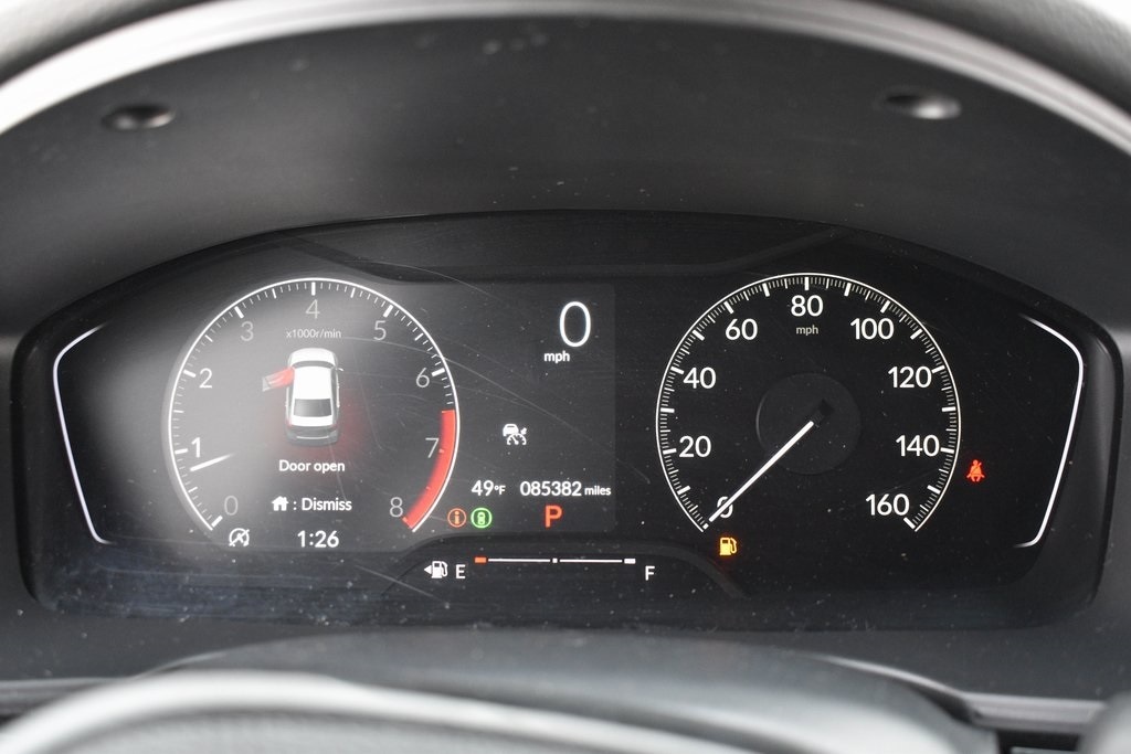 This vehicle comes equipped with Black Cloth, 4-Wheel Disc Brakes, 8 Speakers, ABS brakes, Adaptive Cruise Control: Adaptive Cruise Control (ACC) with Low-Speed Follow, Air Conditioning, Alloy wheels, AM/FM radio, Apple CarPlay/Android Auto, Auto High-beam Headlights, Automatic temperature control, Blind Spot Information (BSI) System warning, Brake assist, Bumpers: body-color, Cloth Seat Trim, Delay-off headlights, Driver door bin, Driver vanity mirror, Dual front impact airbags, Dual front side impact airbags, Electronic Stability Control, Emergency communication system: HondaLink, Exterior Parking Camera Rear, Four wheel independent suspension, Front anti-roll bar, Front Bucket Seats, Front Center Armrest, Front dual zone A/C, Front reading lights, Fully automatic headlights, Heated door mirrors, Heated Front Bucket Seats, Heated front seats, Illuminated entry, Knee airbag, Leather Shift Knob, Leather steering wheel, Low tire pressure warning, Occupant sensing airbag, Outside temperature display, Overhead airbag, Overhead console, Panic alarm, Passenger door bin, Passenger vanity mirror, Power door mirrors, Power moonroof, Power steering, Power windows, Radio data system, Radio: 180-Watt Audio System w/8 Speakers, Rear anti-roll bar, Rear seat center armrest, Rear side impact airbag, Rear window defroster, Remote keyless entry, Security system, Speed control, Speed-sensing steering, Split folding rear seat, Steering wheel mounted audio controls, Tachometer, Telescoping steering wheel, Tilt steering wheel, Traction control, Trip computer, Variably intermittent wipers, and Wheels: 17" Alloy w/Gloss Black Inserts .