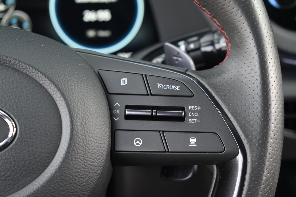 Safety is a priority in the 2023 Sonata N Line, equipped with Hyundai SmartSense safety features, including Forward Collision-Avoidance Assist, Lane Keeping Assist, Blind-Spot Collision-Avoidance Assist, Rear Cross-Traffic Alert, Driver Attention Warning, Adaptive Cruise Control, and a rearview camera. These advanced systems provide peace of mind for daily commutes and long road trips alike.