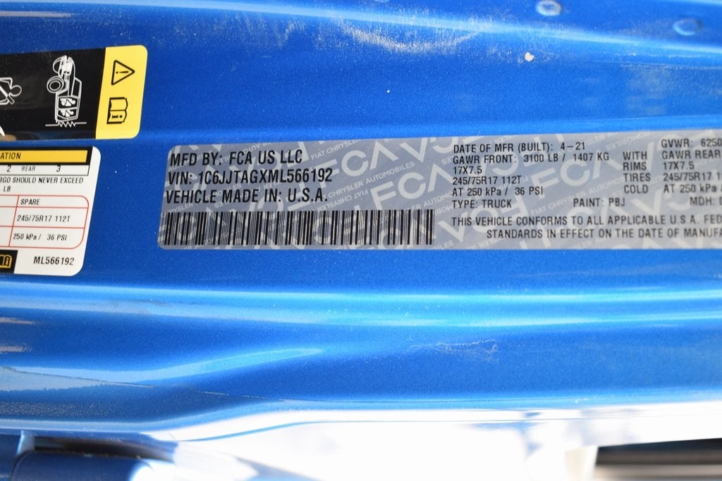 Hydro Blue Pearlcoat 2021 Jeep Gladiator 4WD 8-Speed Automatic 3.6L V6 24V VVT