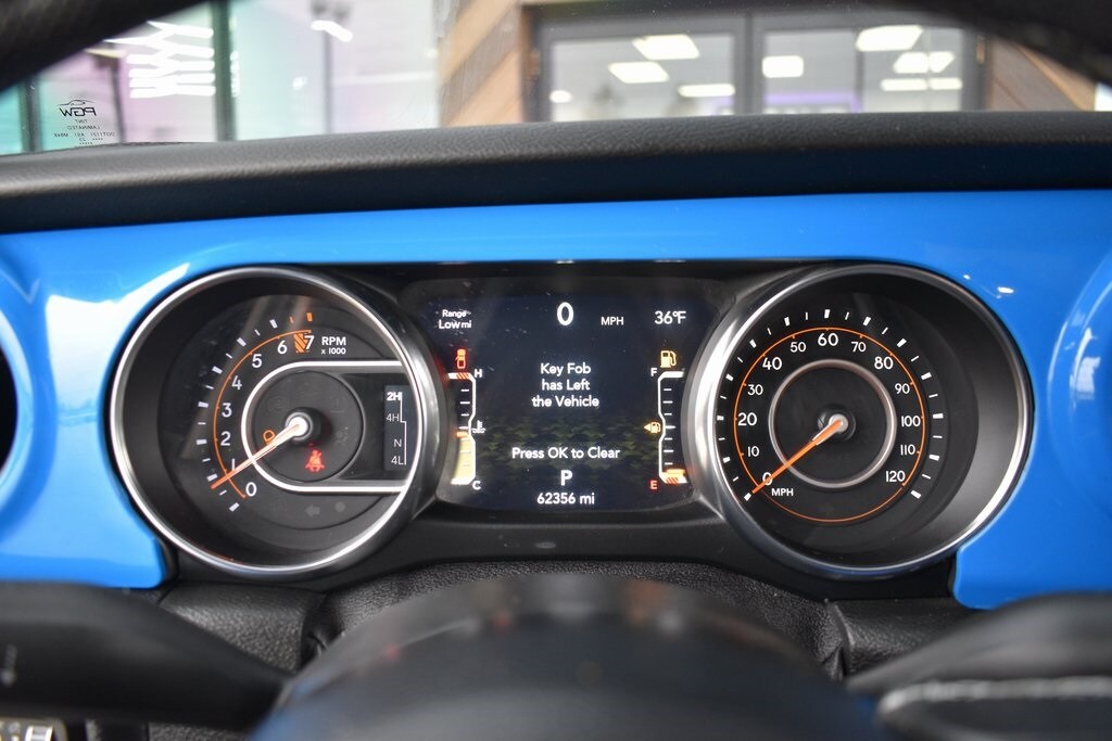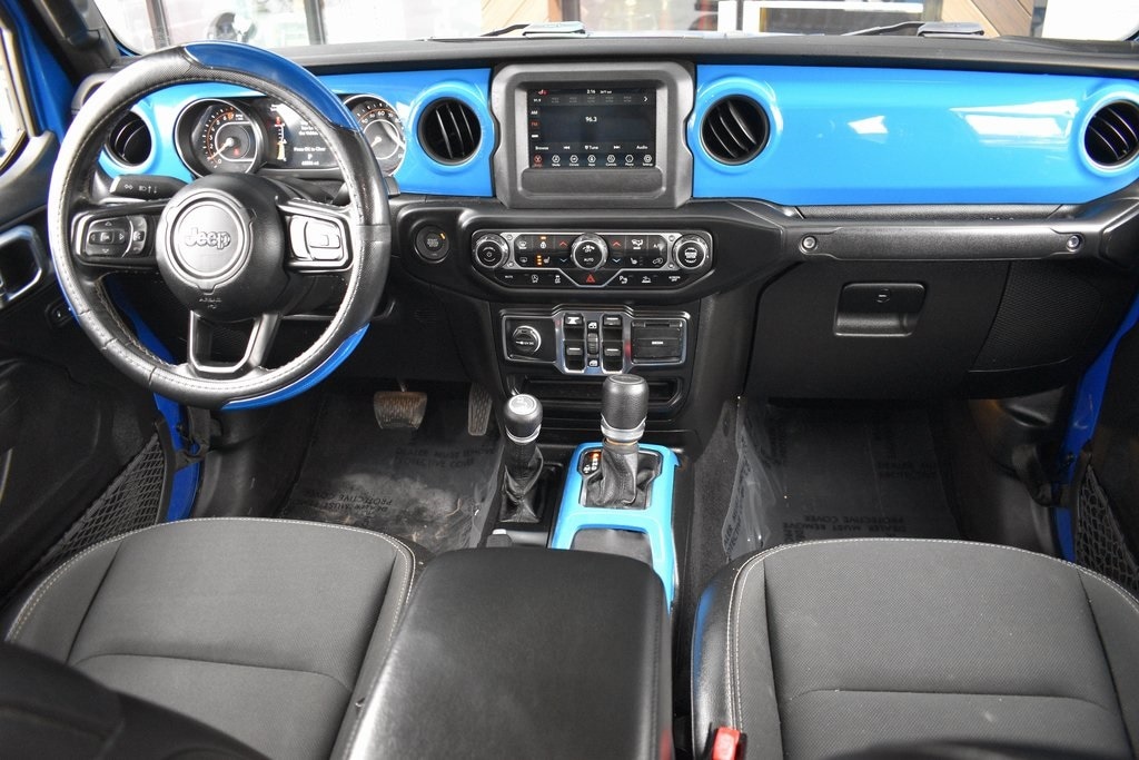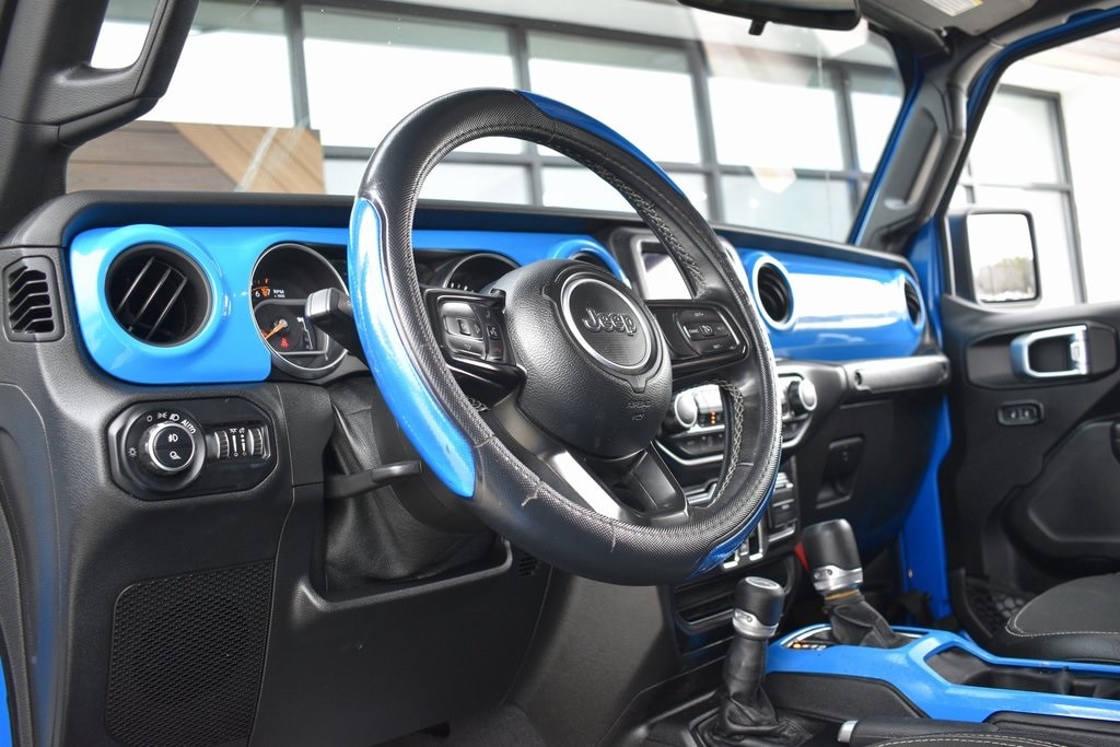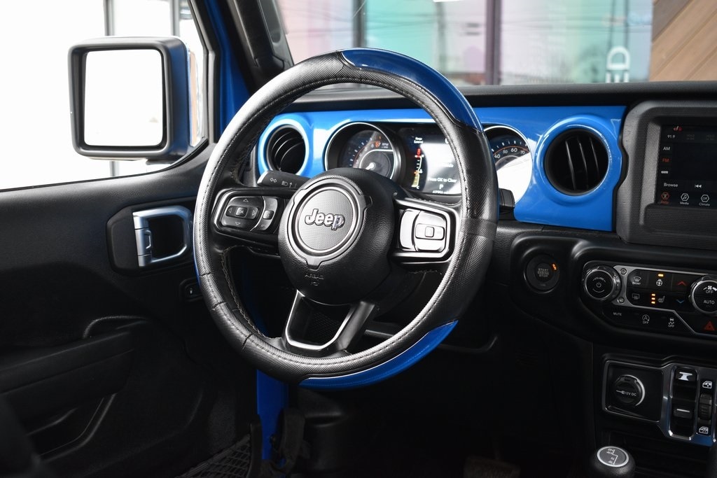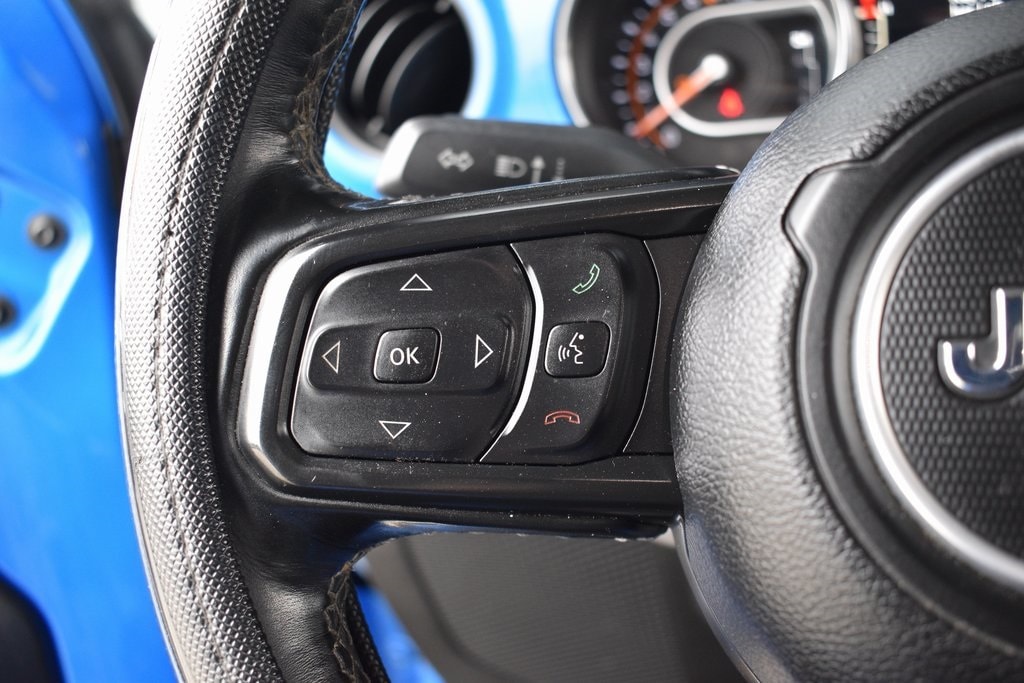 This vehicle comes equipped with Cold Weather Group, Convenience Group, Freedom Edition Package, Freedom Package Decals, GVWR: 6,250 lbs w/Max Tow Package, LED Headlamp & Fog Lamp Group (Daytime Running Lamps LED Accents, Front LED Fog Lamps, and LED Premium Reflector Headlamps), Max Tow Package w/4.10 Axle Ratio (240 Amp Alternator, Anti-Lock 4-Wheel Disc Heavy Duty Brakes, Anti-Spin Differential Rear Axle, Black Molded-In-Color Fender Flares (2-Piece), Class IV Hitch Receiver, Dana M210 Wide Front Axle, Dana M220 Wide Rear Axle, Daytime Running Lamp System, Heavy-Duty Engine Cooling, and Trailer Hitch Zoom), Quick Order Package 24F Freedom (DISC) (2 Front & 2 Rear Tow Hooks, American Flag Decals, Automatic Headlamps, Black Trail Rated Badge, Body Color Fender Flares (2-Piece), Deep Tint Sunscreen Windows, Freedom Edition Interior Accents, Front 1-Touch Down Power Windows, Leather Trimmed Cloth Bucket Seats (DISC), Leather Wrapped Steering Wheel, Normal Duty Plus Suspension, Oscar Mike Badge, Power Heated Mirrors, Power Tailgate Lock, Premium Black Sunrider Soft Top, Rear Armrest w/Cupholder Seat, Remote Keyless Entry, Rock Protection Sill Rails, Security Alarm, Speed Sensitive Power Locks, Steel Front Bumper, Steel Rear Bumper, Sun Visors w/Illuminated Vanity Mirrors, and Wheels: 17" x 7.5" Satin Carbon Painted (DISC)), Safety Group (Blind Spot & Cross Path Detection, LED Taillamps, and ParkSense Rear Park Assist System), Technology Group (7.0" Touch Screen Display, Air Conditioning w/Auto Temperature Control, Apple CarPlay, Cluster 7.0" TFT Color Display, For More Info, Call 800-643-2112, Google Android Auto, GPS Antenna Input, Integrated Center Stack Radio, Integrated Voice Command w/Bluetooth, Radio: Uconnect 4 w/7" Display, SiriusXM Radio Service, SiriusXM Satellite Radio, and USB Host Flip), 110 mph Vehicle Max Speed Calibration, 4-Wheel Disc Brakes, 8 Speakers, ABS brakes, Air Conditioning, AM/FM radio, Black 3-Piece Hard Top, Brake assist, Cloth Low-Back Bucket Seats, Compass, Delay-off headlights, Driver door bin, Driver vanity mirror, Dual front impact airbags, Dual front side impact airbags, Electronic Stability Control, Front anti-roll bar, Front Bucket Seats, Front Center Armrest w/Storage, Front fog lights, Front reading lights, Integrated roll-over protection, Low tire pressure warning, MOPAR All-Weather Floor Mats (DISC), MOPAR Hardtop Headliner, MOPAR Rear Splash Guards, MOPAR Spray In Bedliner, Normal Duty Suspension, Occupant sensing airbag, Outside temperature display, ParkView Rear Back-Up Camera, Passenger door bin, Passenger vanity mirror, Power steering, Radio data system, Radio: Uconnect 3 w/5" Display, Rear anti-roll bar, Rear reading lights, Speed control, Split folding rear seat, Steering wheel mounted audio controls, Tachometer, Telescoping steering wheel, Tilt steering wheel, Traction control, Trip computer, Variably intermittent wipers, and Wheels: 17" x 7.5" Black Steel Styled .