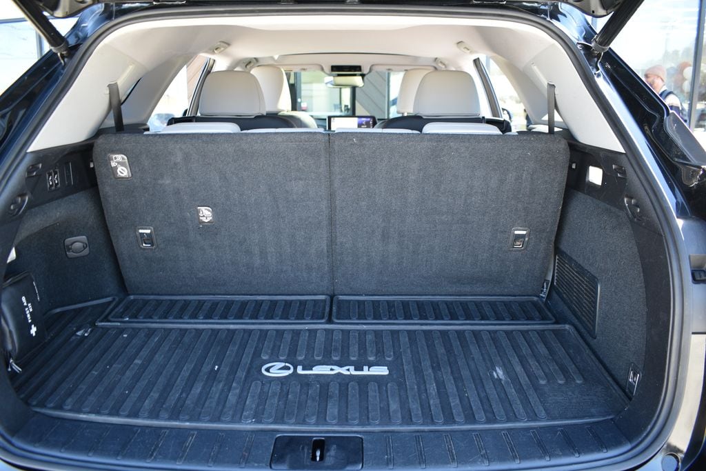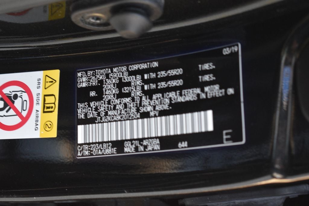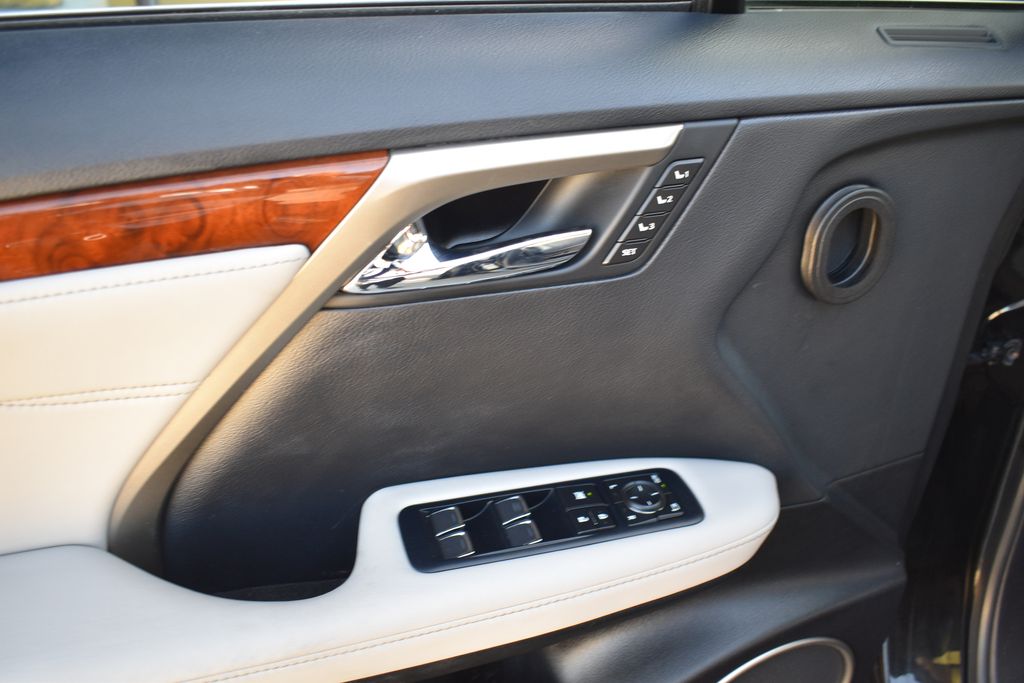 This vehicle comes equipped with Gray Leather, 3.33 Axle Ratio, 3rd row seats: split-bench, 4-Wheel Disc Brakes, 9 Speakers, ABS brakes, Air Conditioning, Alloy wheels, AM/FM radio: SiriusXM, Anti-whiplash front head restraints, Auto High-beam Headlights, Auto-dimming Rear-View mirror, Automatic temperature control, Brake assist, Bumpers: body-color, CD player, Compass, Delay-off headlights, Driver door bin, Driver vanity mirror, Dual front impact airbags, Dual front side impact airbags, Electronic Stability Control, Exterior Parking Camera Rear, Four wheel independent suspension, Front anti-roll bar, Front Bucket Seats, Front Center Armrest, Front dual zone A/C, Front fog lights, Front reading lights, Fully automatic headlights, Garage door transmitter: HomeLink, Heated door mirrors, Illuminated entry, Knee airbag, Leather Seat Trim, Leather Shift Knob, Leather steering wheel, Low tire pressure warning, Occupant sensing airbag, Outside temperature display, Overhead airbag, Overhead console, Panic alarm, Passenger door bin, Passenger vanity mirror, Power door mirrors, Power driver seat, Power Liftgate, Power passenger seat, Power steering, Power windows, Radio data system, Radio: AM/FM/CD Lexus Display Audio, Rain sensing wipers, Rear air conditioning, Rear anti-roll bar, Rear reading lights, Rear seat center armrest, Rear side impact airbag, Rear window defroster, Rear window wiper, Reclining 3rd row seat, Remote keyless entry, Security system, Speed control, Speed-sensing steering, Split folding rear seat, Spoiler, Steering wheel mounted audio controls, Tachometer, Telescoping steering wheel, Tilt steering wheel, Traction control, Trip computer, Turn signal indicator mirrors, Variably intermittent wipers, and Wheels: 18" x 8" 7-Spoke Aluminum .