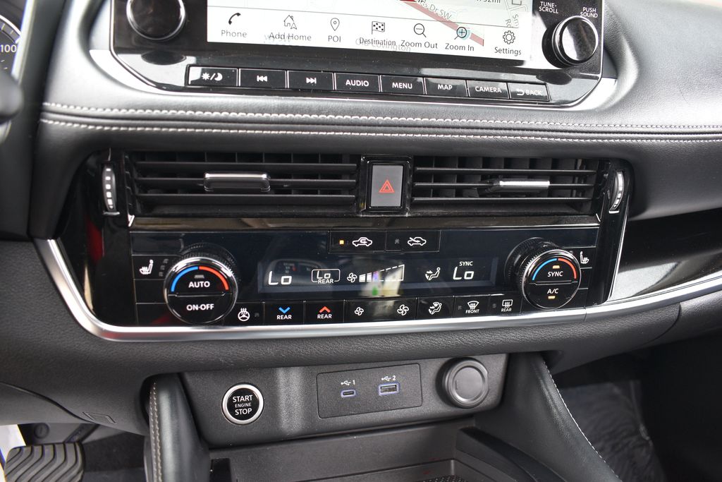 This vehicle comes equipped with SL Premium Package (Bose Premium Audio System, Front, Side & Rear Sonar, Motion Activated Power Liftgate, ProPILOT Assist w/Navi-link, Radio: AM/FM NissanConnect w/Navigation, Rear Door Sunshades, Traffic Sign Recognition, and Tri-Zone HVAC), AWD, 19" Aluminum Alloy Wheels, 4-Wheel Disc Brakes, 5.604 Axle Ratio, 6 Speakers, ABS brakes, Air Conditioning, Alloy wheels, AM/FM Radio, AM/FM radio: SiriusXM, Auto High-beam Headlights, Auto-dimming Rear-View mirror, Automatic temperature control, Black Splash Guards (Set of 4), Brake assist, Bumpers: body-color, Chrome Rear Bumper Protector, Delay-off headlights, Driver door bin, Driver vanity mirror, Dual front impact airbags, Dual front side impact airbags, Electronic Stability Control, Emergency communication system: NissanConnect Services, External Ground Lighting, First Aid Kit, Floor Mats w/2-Piece Cargo Area Protector, Four wheel independent suspension, Frameless Rearview Mirror w/Universal Remote, Front anti-roll bar, Front Bucket Seats, Front Center Armrest, Front dual zone A/C, Front reading lights, Fully automatic headlights, Heated door mirrors, Heated Front Bucket Seats, Heated front seats, Heated steering wheel, Illuminated entry, Illuminated Kick Plates, Interior Accent Lighting, Knee airbag, Leather steering wheel, Leather-Appointed Seat Trim, Low tire pressure warning, Memory seat, NissanConnect featuring Apple CarPlay and Android Auto, Occupant sensing airbag, Outside temperature display, Overhead airbag, Overhead console, Panic alarm, Passenger door bin, Passenger vanity mirror, Power door mirrors, Power driver seat, Power Liftgate, Power moonroof, Power passenger seat, Power steering, Power windows, Radio data system, Rear anti-roll bar, Rear Parking Sensors, Rear reading lights, Rear seat center armrest, Rear side impact airbag, Rear window defroster, Rear window wiper, Remote keyless entry, Retractable Cargo Cover, Security system, Speed control, Speed-Sensitive Wipers, Split folding rear seat, Spoiler, Steering wheel mounted audio controls, Tachometer, Telescoping steering wheel, Tilt steering wheel, Traction control, Trip computer, Turn signal indicator mirrors, USB Charging Cable Set - Nissan, and Variably intermittent wipers .