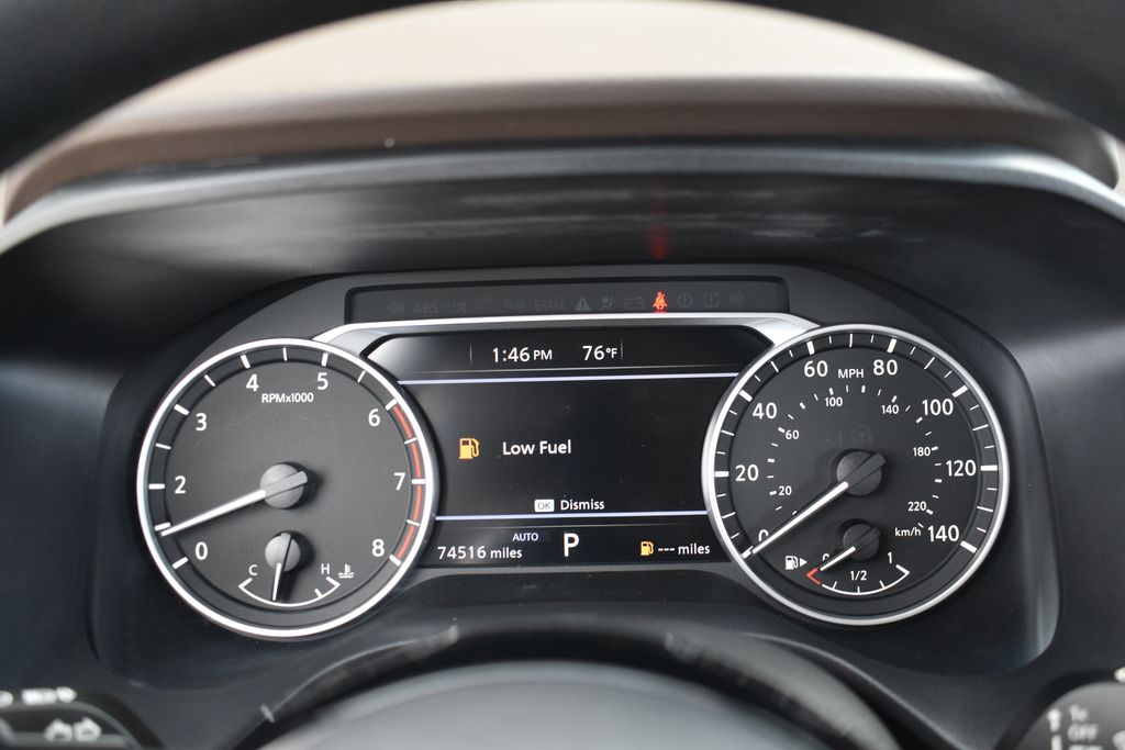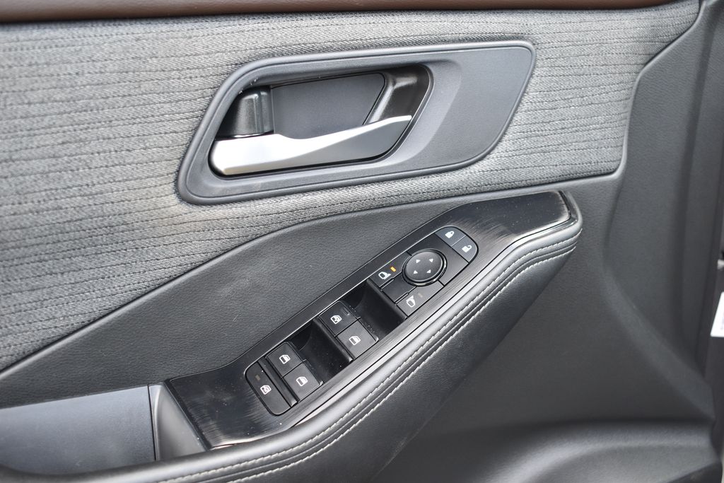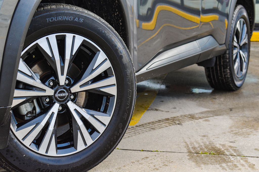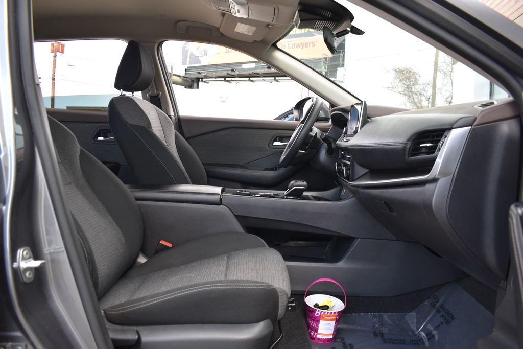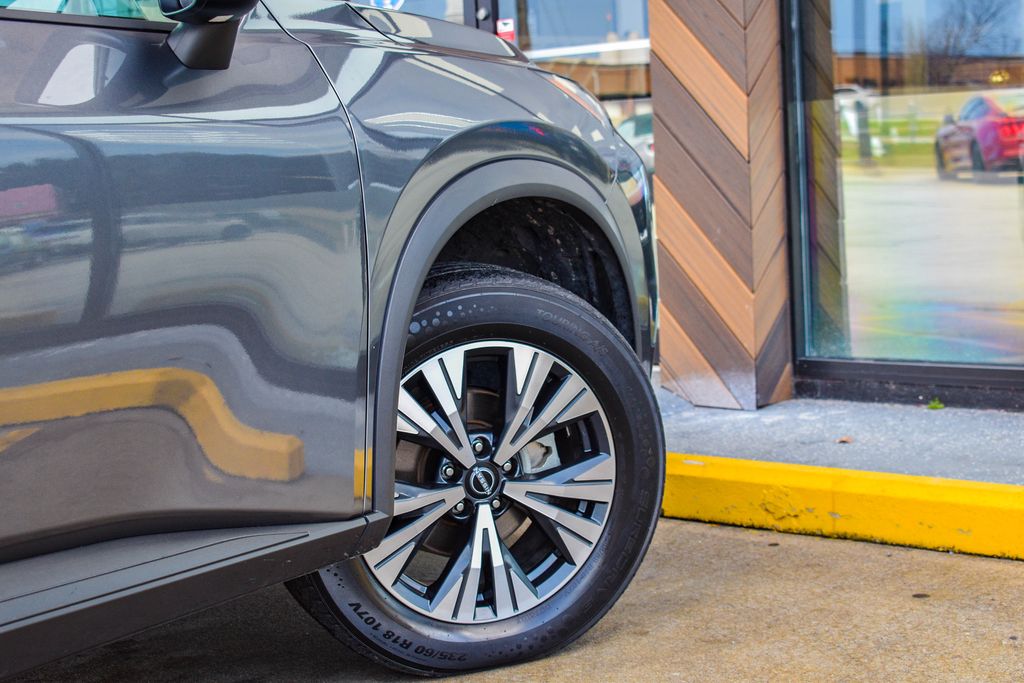 This vehicle comes equipped with AWD, 18" Aluminum Alloy Wheels, 4-Wheel Disc Brakes, 5.604 Axle Ratio, 6 Speakers, ABS brakes, Air Conditioning, Alloy wheels, AM/FM Radio, AM/FM radio: SiriusXM, Auto High-beam Headlights, Automatic temperature control, Brake assist, Bumpers: body-color, Cloth Seat Trim, Delay-off headlights, Driver door bin, Driver vanity mirror, Dual front impact airbags, Dual front side impact airbags, Electronic Stability Control, Emergency communication system: NissanConnect Services, First Aid Kit, Floor Mats w/1-Piece Cargo Area Protector, Four wheel independent suspension, Front anti-roll bar, Front Bucket Seats, Front Center Armrest, Front dual zone A/C, Front reading lights, Fully automatic headlights, Heated door mirrors, Illuminated entry, Knee airbag, Low tire pressure warning, NissanConnect featuring Apple CarPlay and Android Auto, Occupant sensing airbag, Outside temperature display, Overhead airbag, Overhead console, Panic alarm, Passenger door bin, Passenger vanity mirror, Power door mirrors, Power driver seat, Power steering, Power windows, Radio data system, Rear anti-roll bar, Rear Parking Sensors, Rear seat center armrest, Rear side impact airbag, Rear window defroster, Rear window wiper, Remote keyless entry, Speed control, Speed-Sensitive Wipers, Split folding rear seat, Spoiler, Steering wheel mounted audio controls, Tachometer, Telescoping steering wheel, Tilt steering wheel, Traction control, Trip computer, and Variably intermittent wipers .