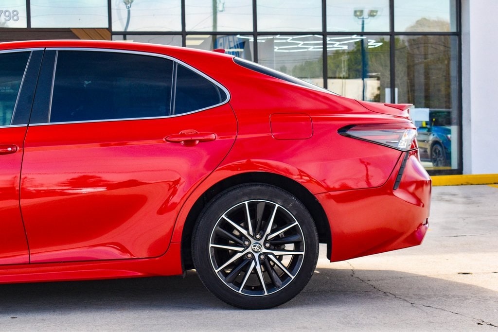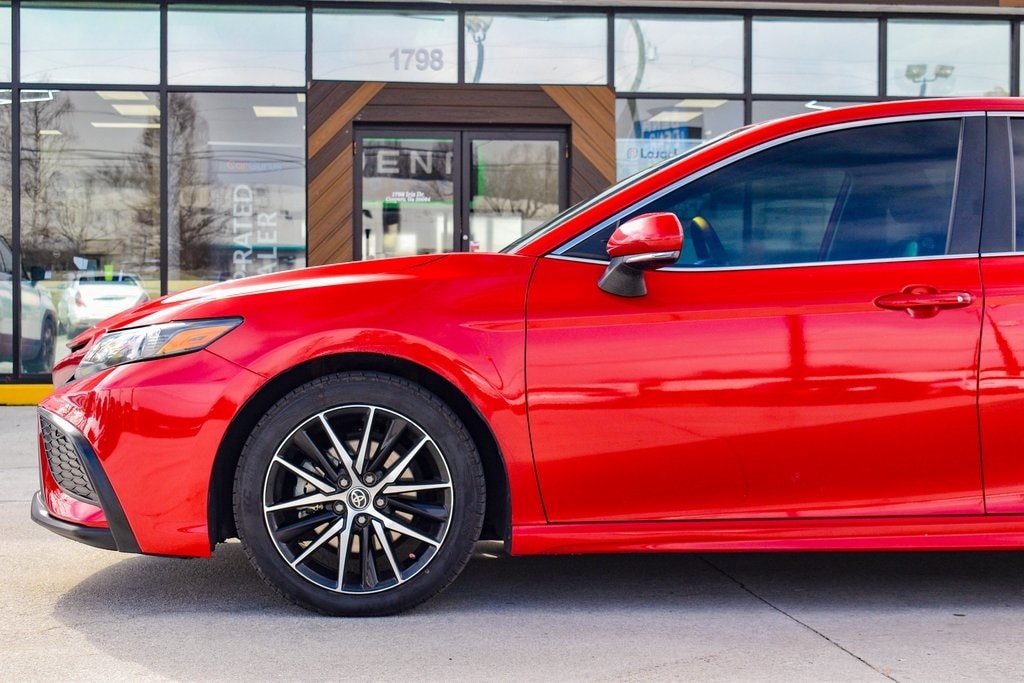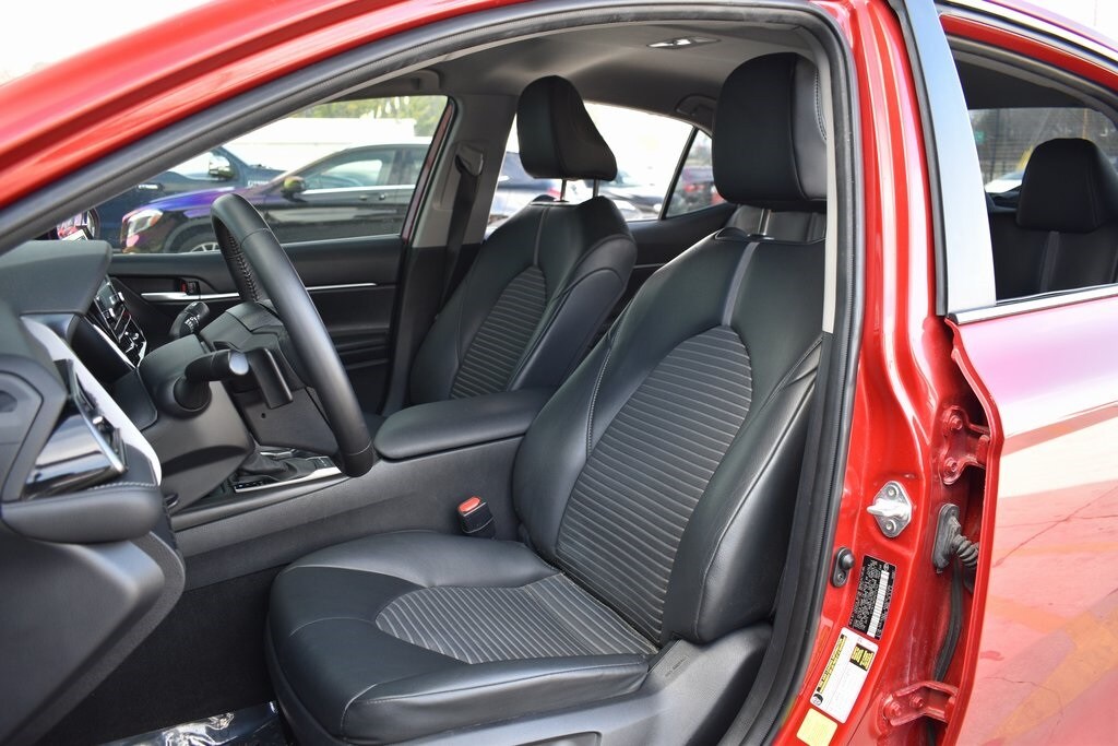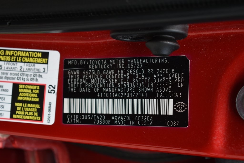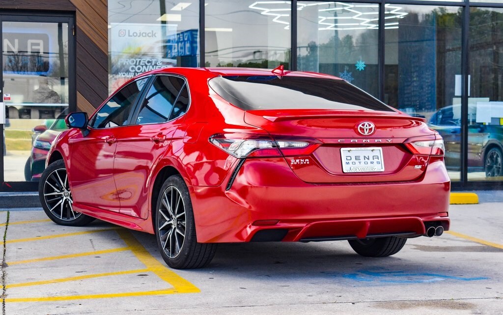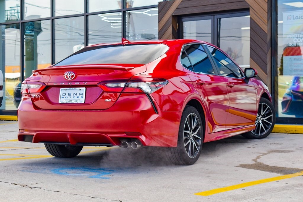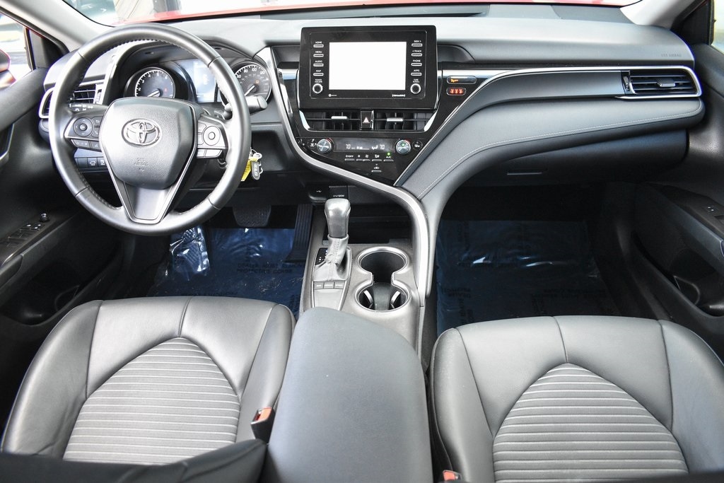 Red 2023 Toyota Camry SE FWD 8-Speed Automatic 2.5L I4 DOHC 16V Black Artificial Leather.