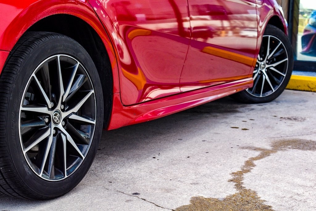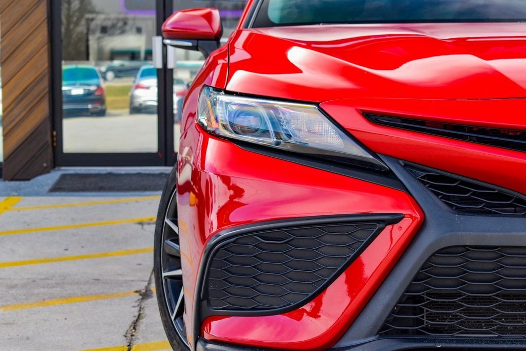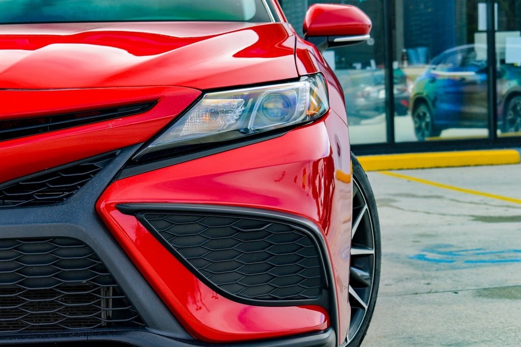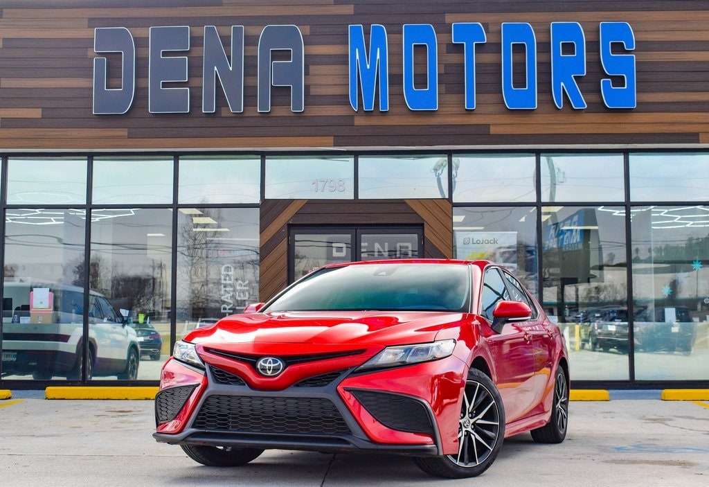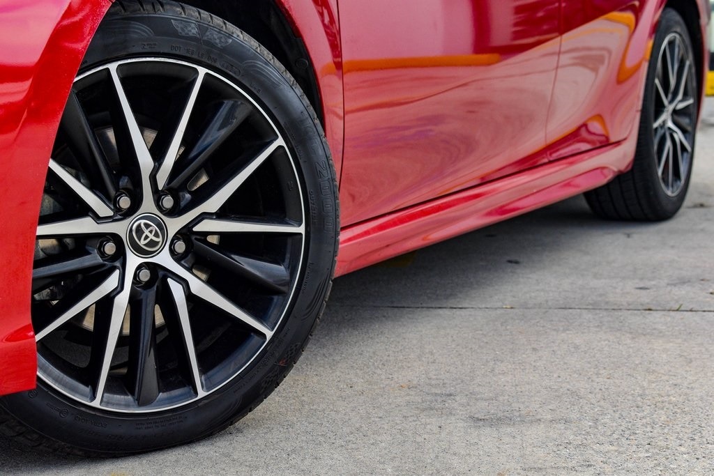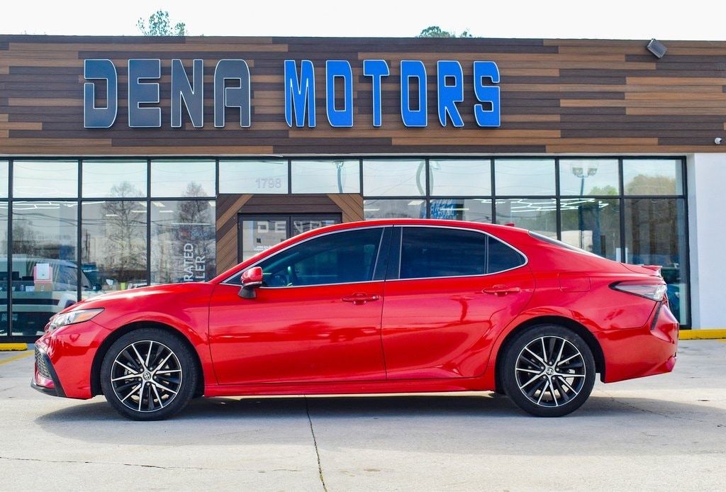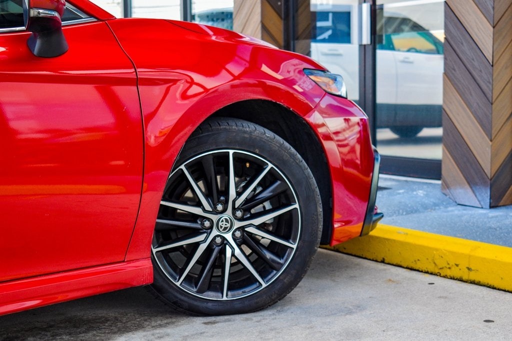 Red 2023 Toyota Camry SE FWD 8-Speed Automatic 2.5L I4 DOHC 16V Black Artificial Leather.