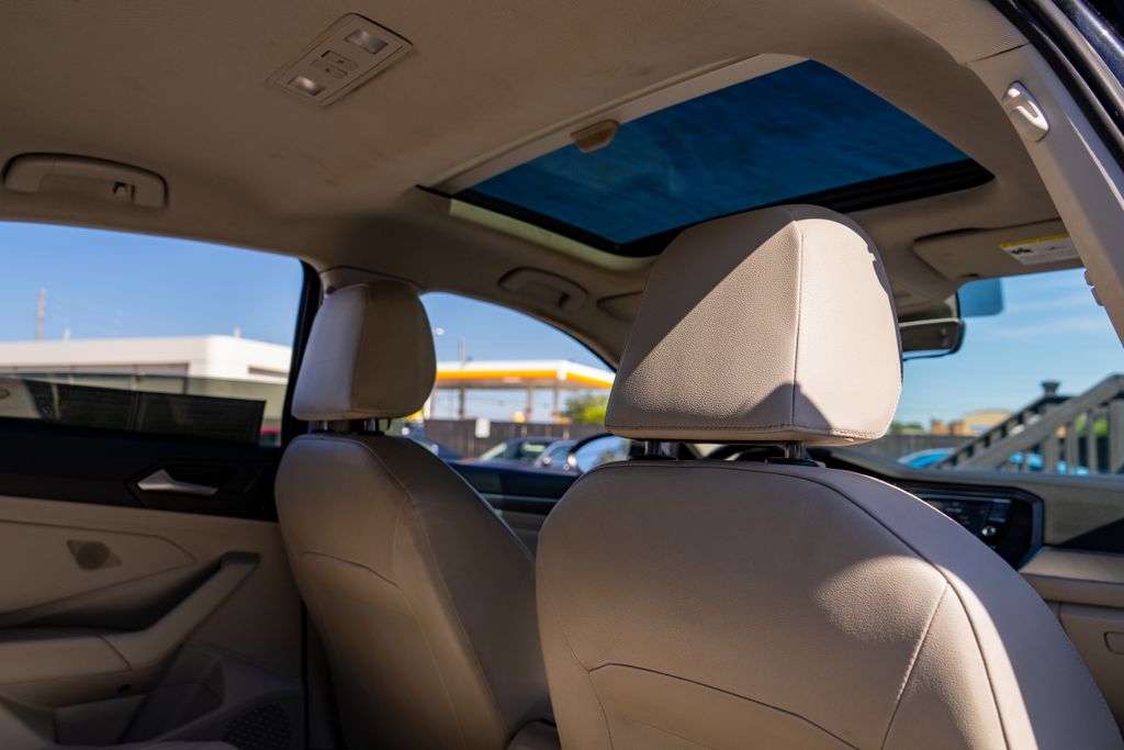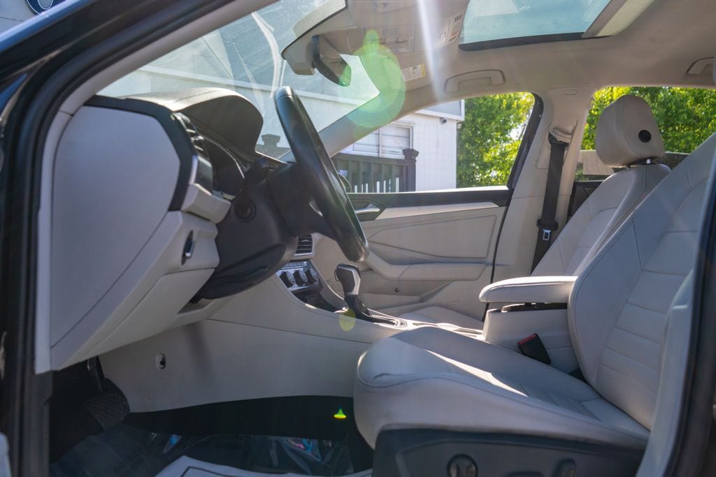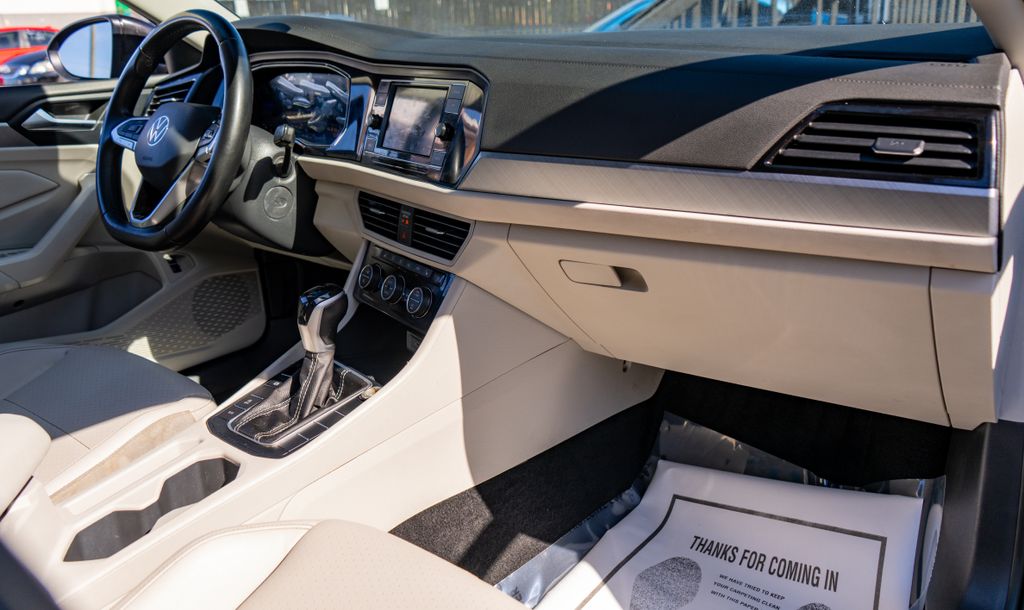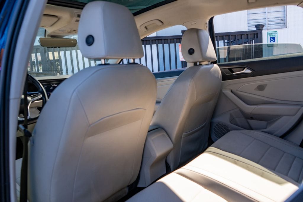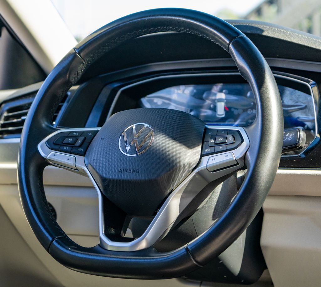 This vehicle comes equipped with Black Wheel Package (Wheels: 17" Twin 5-Spoke Dark Graphite Painted Alloy), Panoramic Sunroof Package (Dual Front Reading Lights, Illuminated Vanity Mirrors, Overhead Storage Compartment, and Power Tilting & Sliding Panoramic Sunroof), Storm Gray Premium Synthetic, 4 Speakers, 4-Wheel Disc Brakes, ABS brakes, Active Blind Spot Monitor, Air Conditioning, Alloy wheels, AM/FM radio, Auto-dimming Rear-View mirror, Auto-Dimming Rearview Mirror w/HomeLink Connect, Automatic temperature control, Brake assist, Bumpers: body-color, Credit - Rear Sensors Removed, Delay-off headlights, Driver door bin, Driver vanity mirror, Dual front impact airbags, Dual front side impact airbags, Electronic Stability Control, Emergency communication system: VW Car-Net Safe & Secure 5-year, Exterior Parking Camera Rear, Front anti-roll bar, Front Bucket Seats, Front Center Armrest, Front dual zone A/C, Front wheel independent suspension, Fully automatic headlights, Heated door mirrors, Heated Front Comfort Sport Seats, Heated front seats, Heavy Duty Trunk Liner w/VW CarGo Blocks, Illuminated entry, Leather Shift Knob, Low tire pressure warning, Occupant sensing airbag, Outside temperature display, Overhead airbag, Overhead console, Panic alarm, Passenger door bin, Passenger vanity mirror, Power door mirrors, Power driver seat, Power steering, Power windows, Radio data system, Radio: MIB3 Composition Color w/6.5" Touchscreen, Rain sensing wipers, Rear anti-roll bar, Rear reading lights, Rear seat center armrest, Rear window defroster, Remote keyless entry, Rubber Monster Mats Kit (Set of 4), Speed control, Speed-sensing steering, Split folding rear seat, Steering wheel mounted audio controls, Tachometer, Telescoping steering wheel, Tilt steering wheel, Traction control, Trip computer, V-Tex Leatherette Seat Trim, Variably intermittent wipers, VW Car-Net Safe & Secure 5-Year Plan, and Wheels: 17" Twin 5-Spoke Silver Painted Alloy .