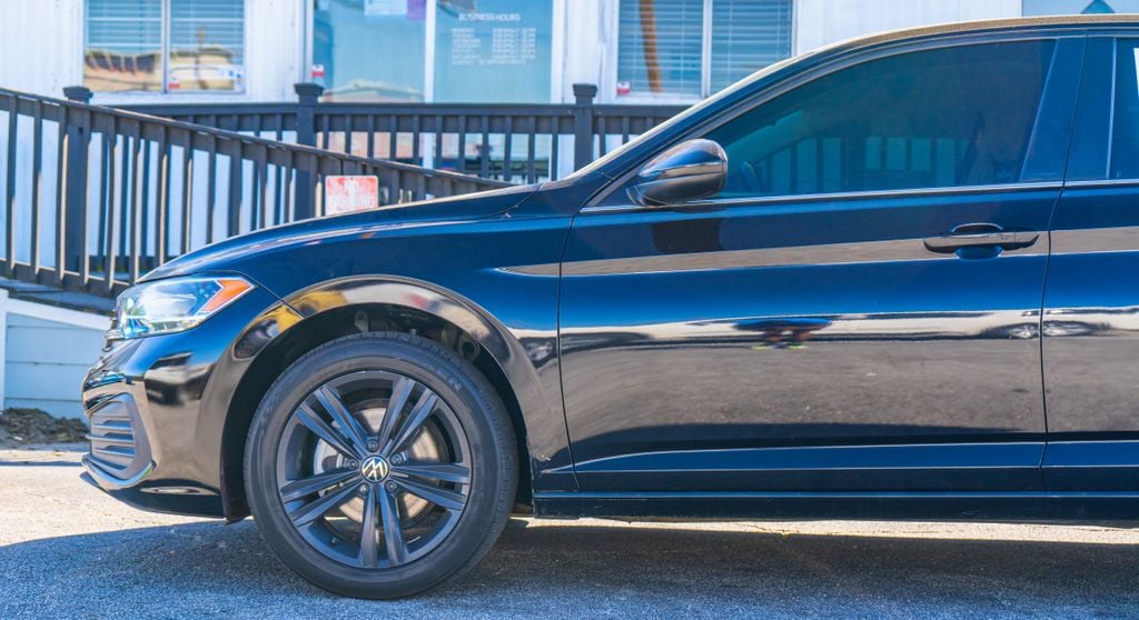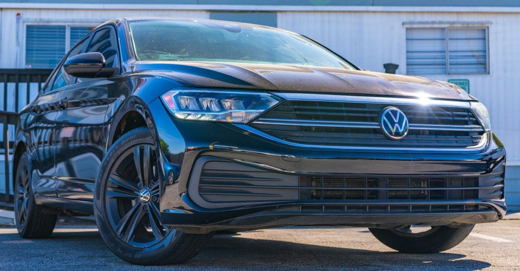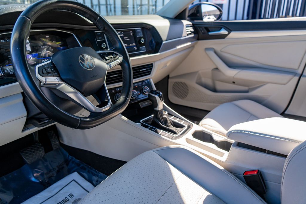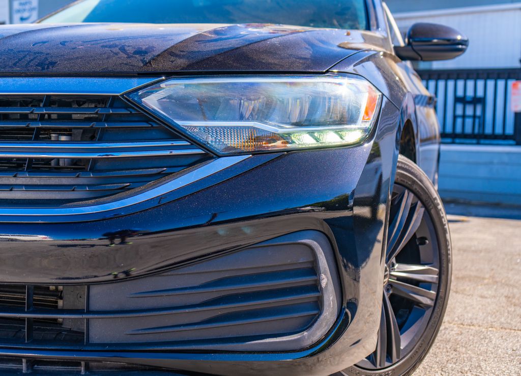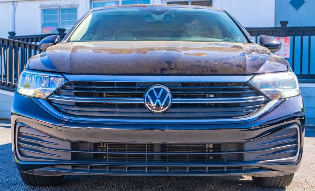 Deep Black 2023 Volkswagen Jetta 1.5T SE FWD 8-Speed Automatic with Tiptronic 1.5L I-4 DI DOHC Turbocharged Storm Gray Premium Synthetic.